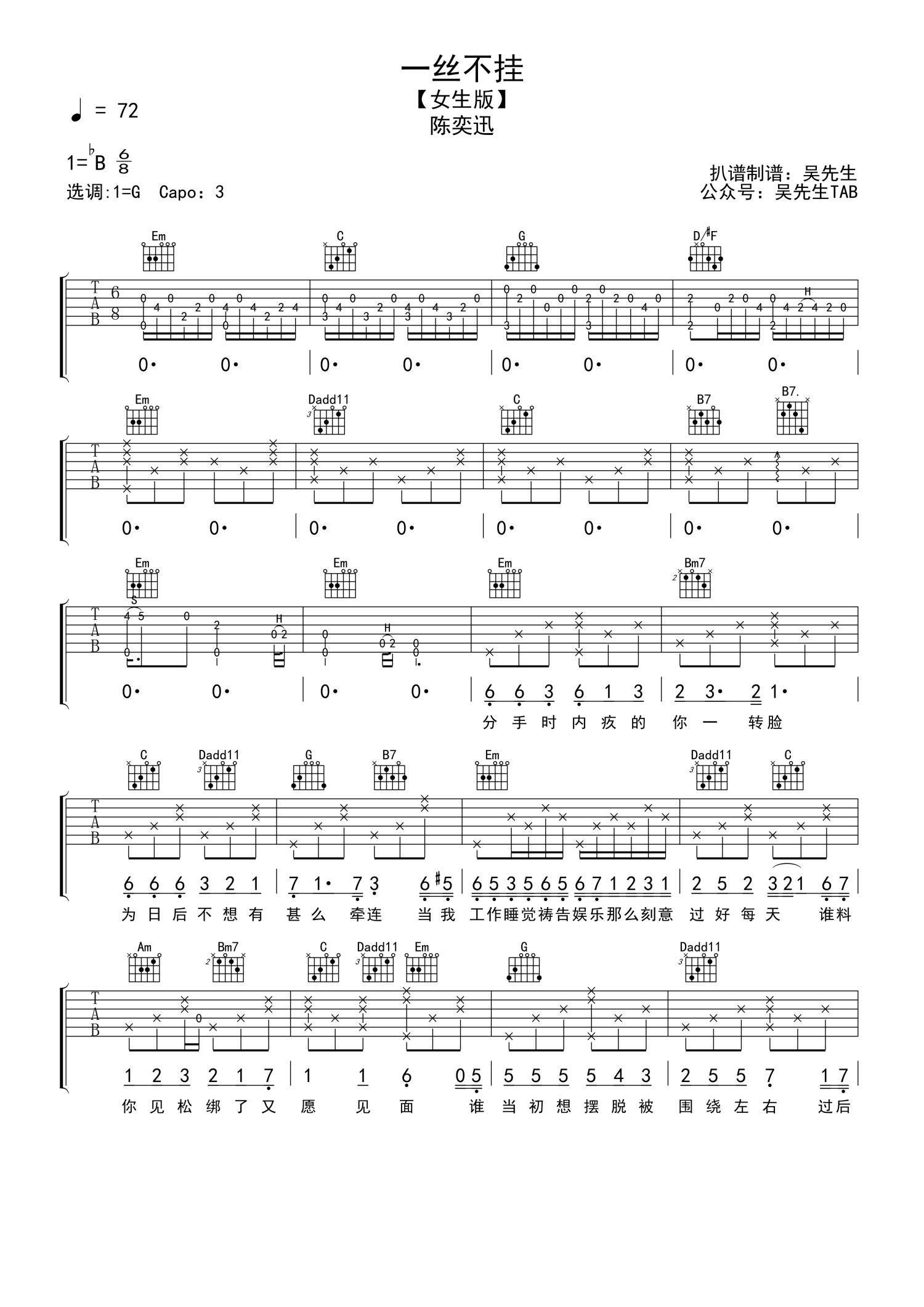 吉他弹唱G调来源:吴先生TAB721 浏览2022-03-24 10:03发布图谱共4页