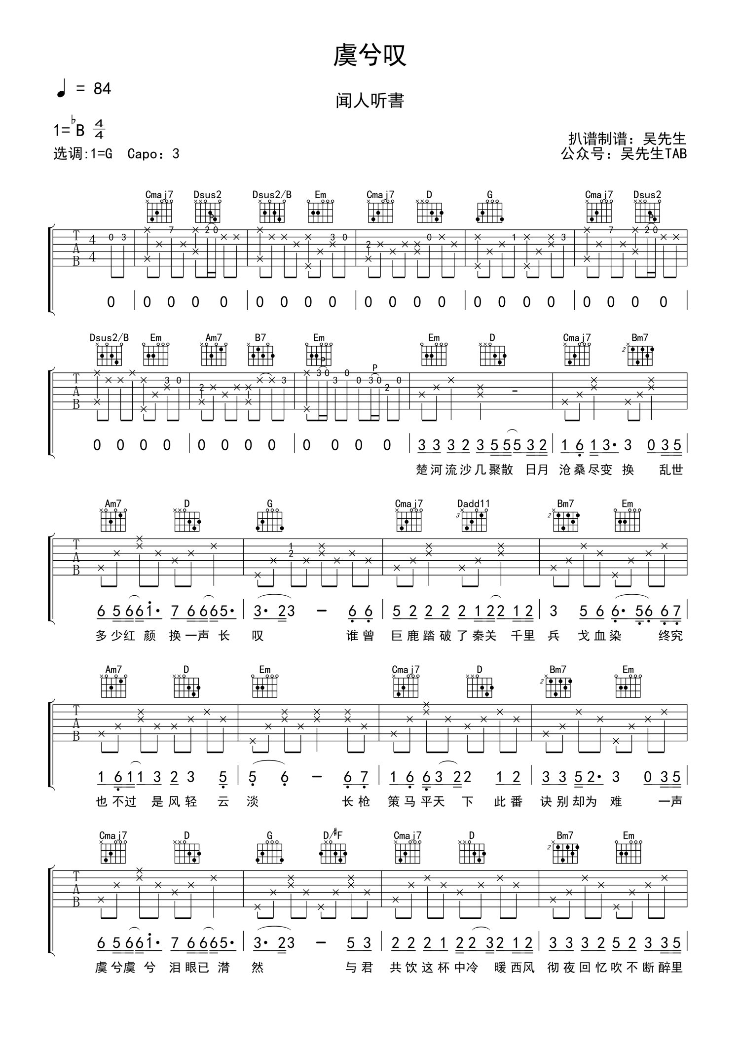 曲谱介绍: 闻人听書《虞兮叹》吉他谱_G调吉他弹唱谱