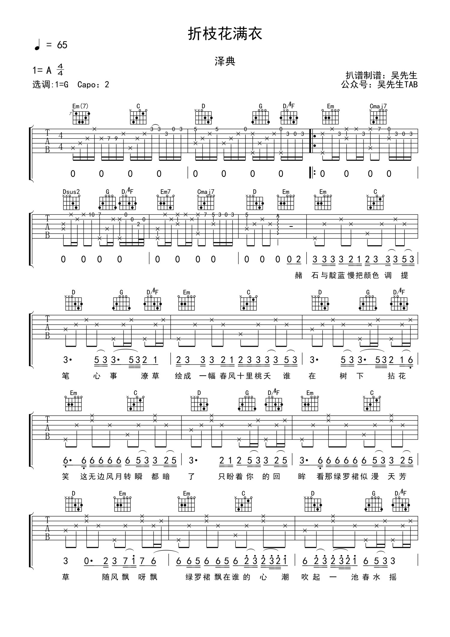 曲谱介绍: 泽典《折枝花满衣》吉他谱_G调吉他弹唱谱