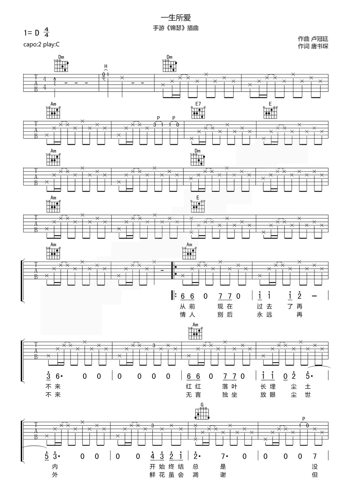 当前位置:琴谱网>吉他弹唱>一生所爱