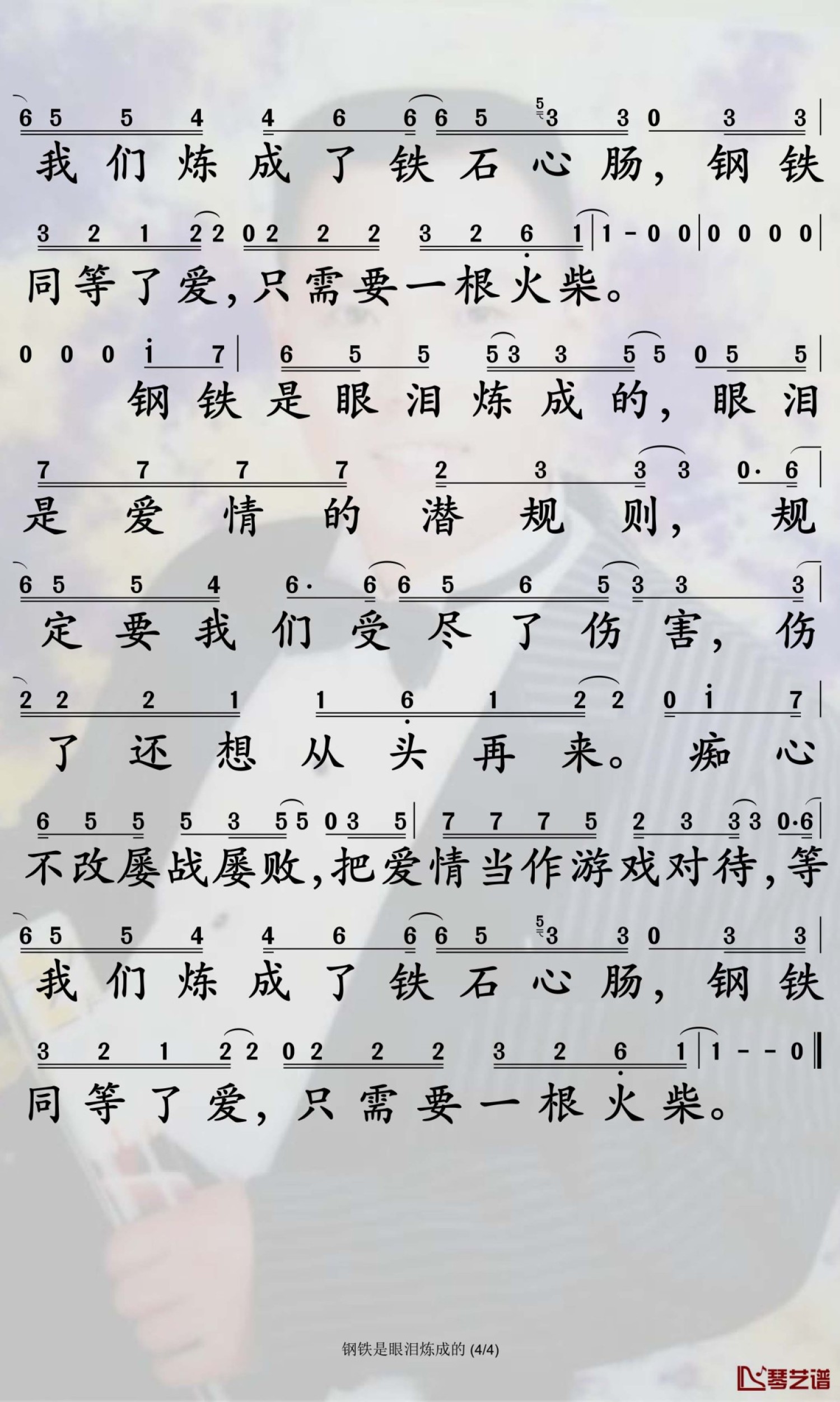 琴谱网尊重作者版权,不会私自去掉作者提供的水印,此类图谱如需去掉水印,请自行去除后,通过站内自助上传打印即可。