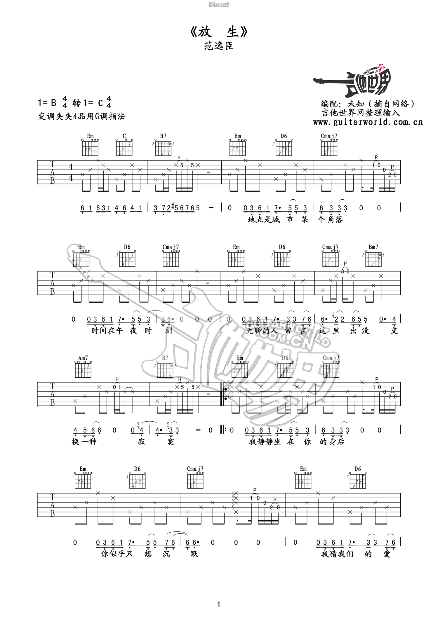 当前位置:琴谱网>吉他弹唱>范逸臣放生