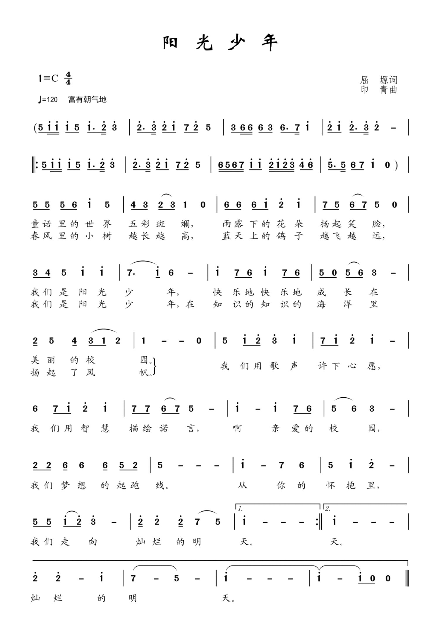 曲谱介绍: 《阳光少年》简谱、歌词  C调歌曲