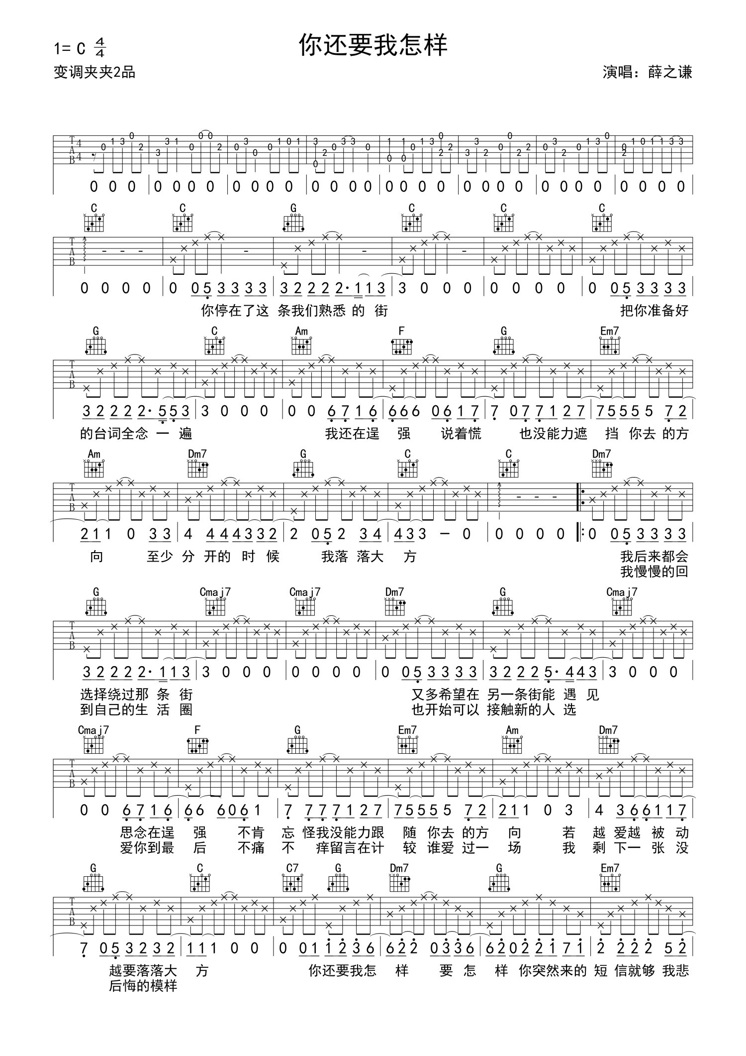 • 你还要我怎样吉他谱 - 薛之谦 - C调吉他弹唱谱第1张