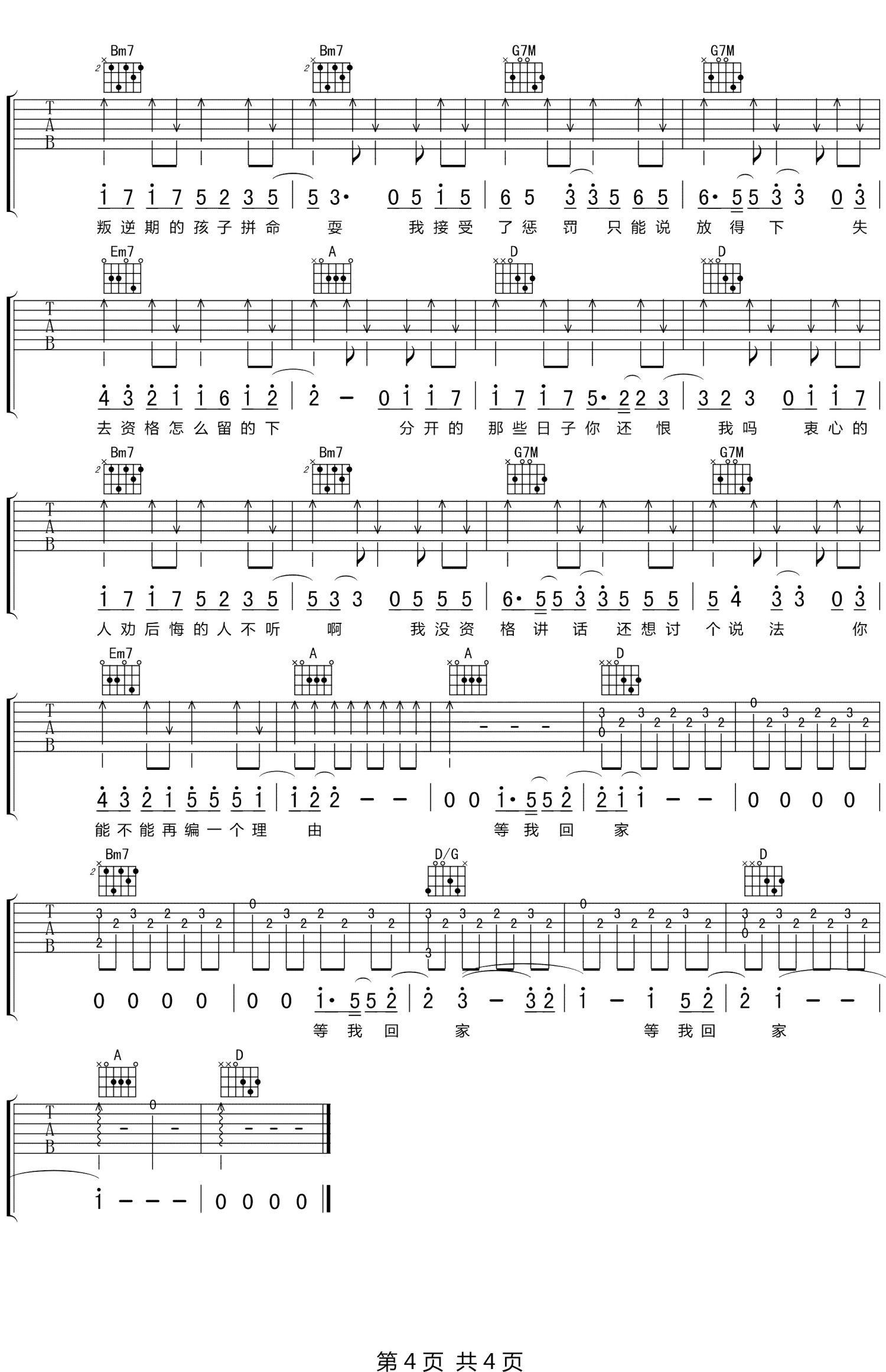 当前位置:琴谱网>吉他弹唱>等我回家