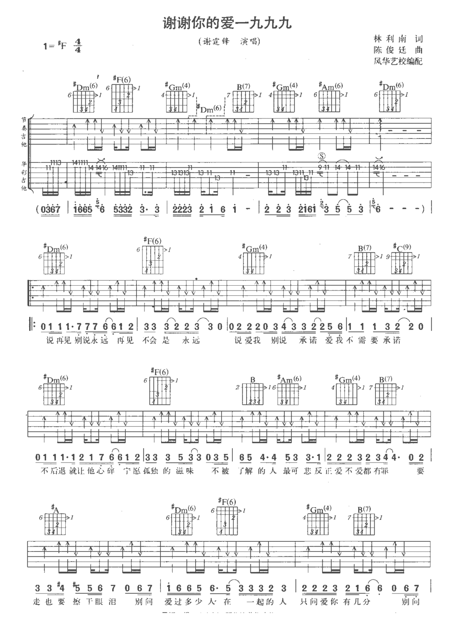 谢谢你的爱1999吉他谱 - 谢霆锋 - 吉他弹唱谱