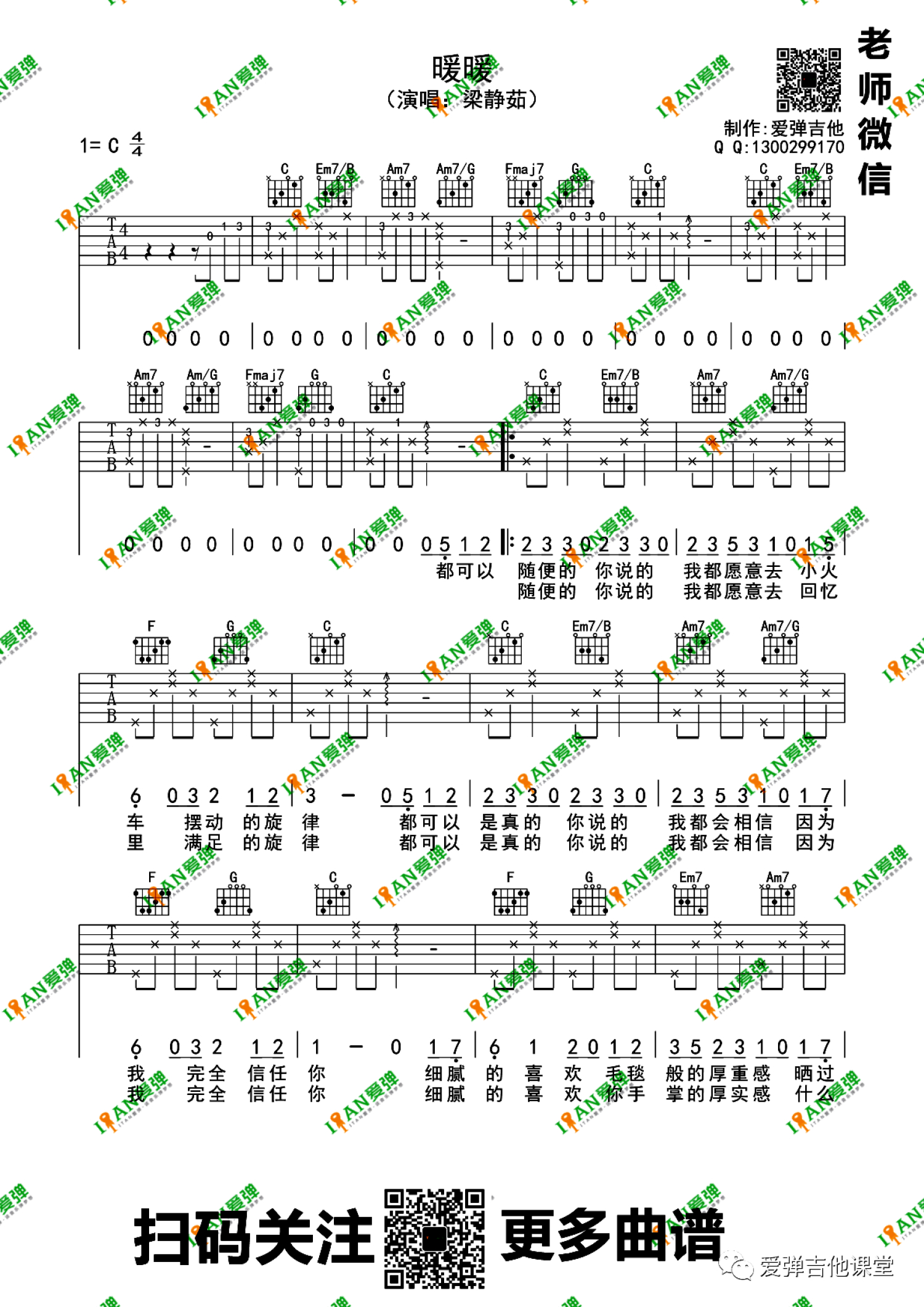 曲谱介绍: 梁静茹《暖暖》吉他弹唱谱,共有2张高清图谱,免翻页排版设计。