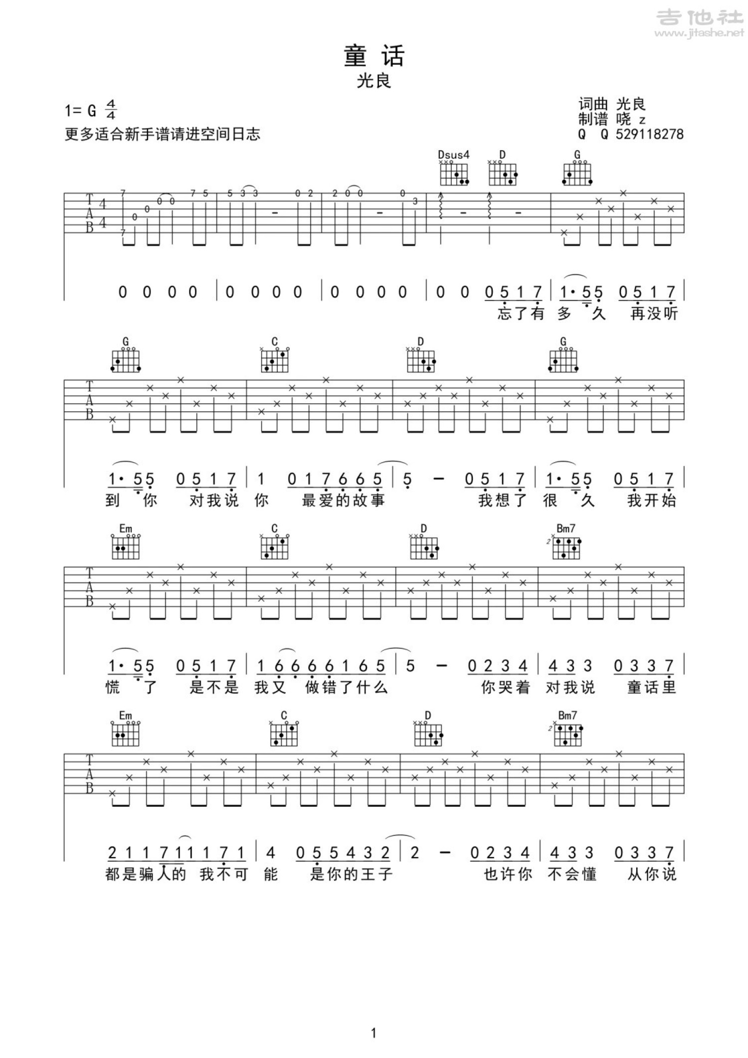 童话吉他谱 - 光良 - G调吉他弹唱谱