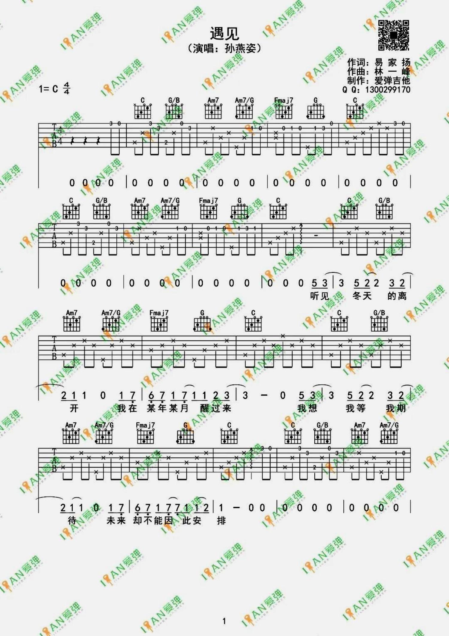 曲谱介绍: 孙燕姿《遇见》吉他弹唱谱,共有3张高清图谱。