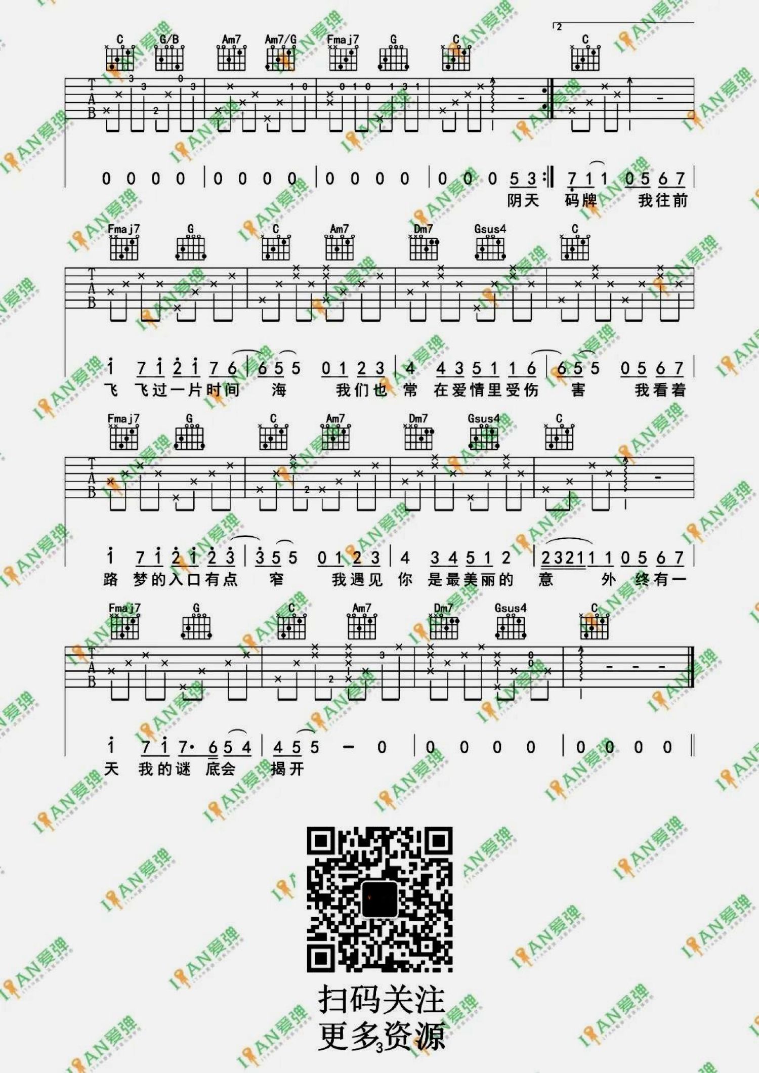 吉他弹唱C调来源:爱弹吉他516 浏览2022-04-07 22:07发布图谱共3页