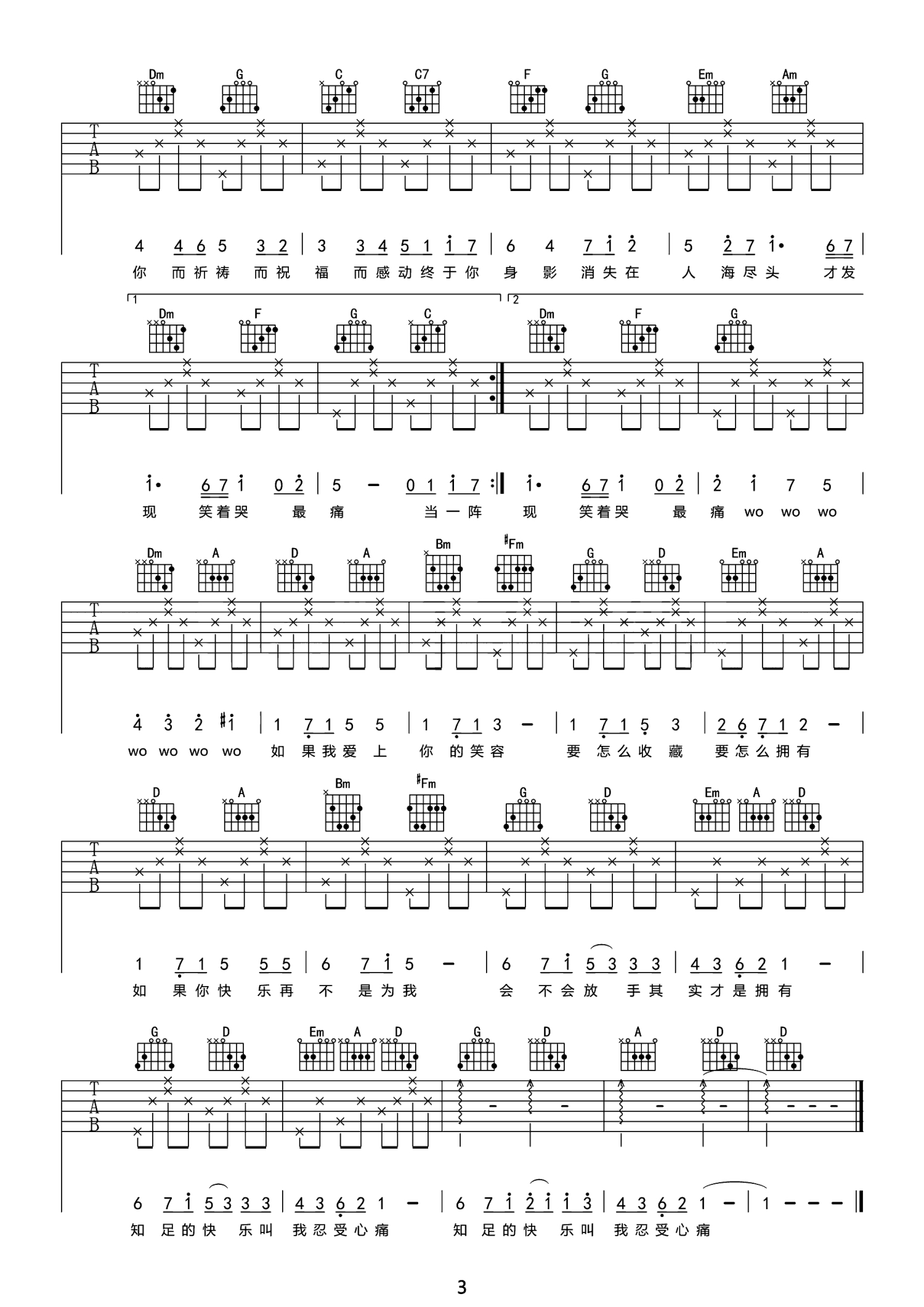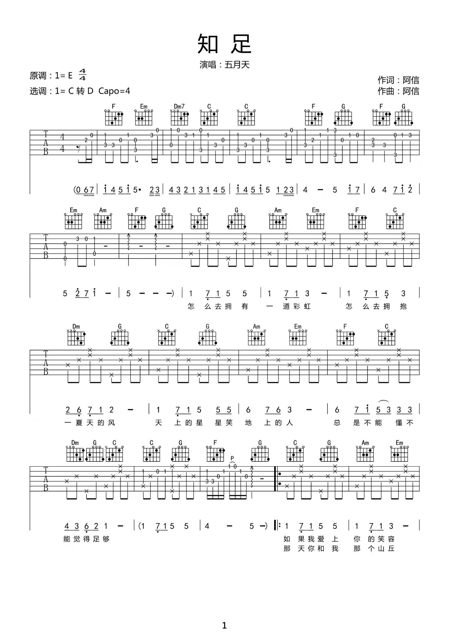 曲谱介绍: 五月天《知足》吉他弹唱谱,共有3张高清图谱。