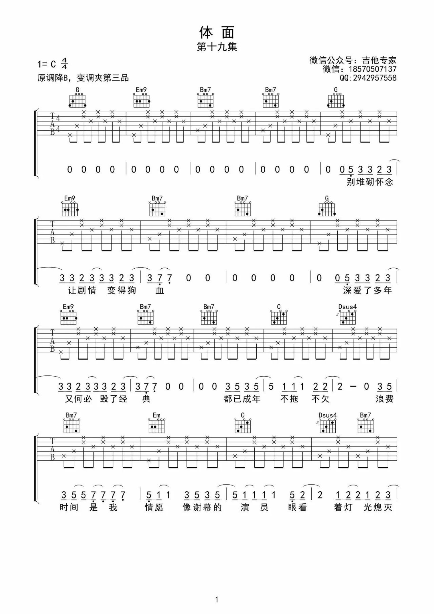 当前位置:琴谱网>吉他弹唱>体面