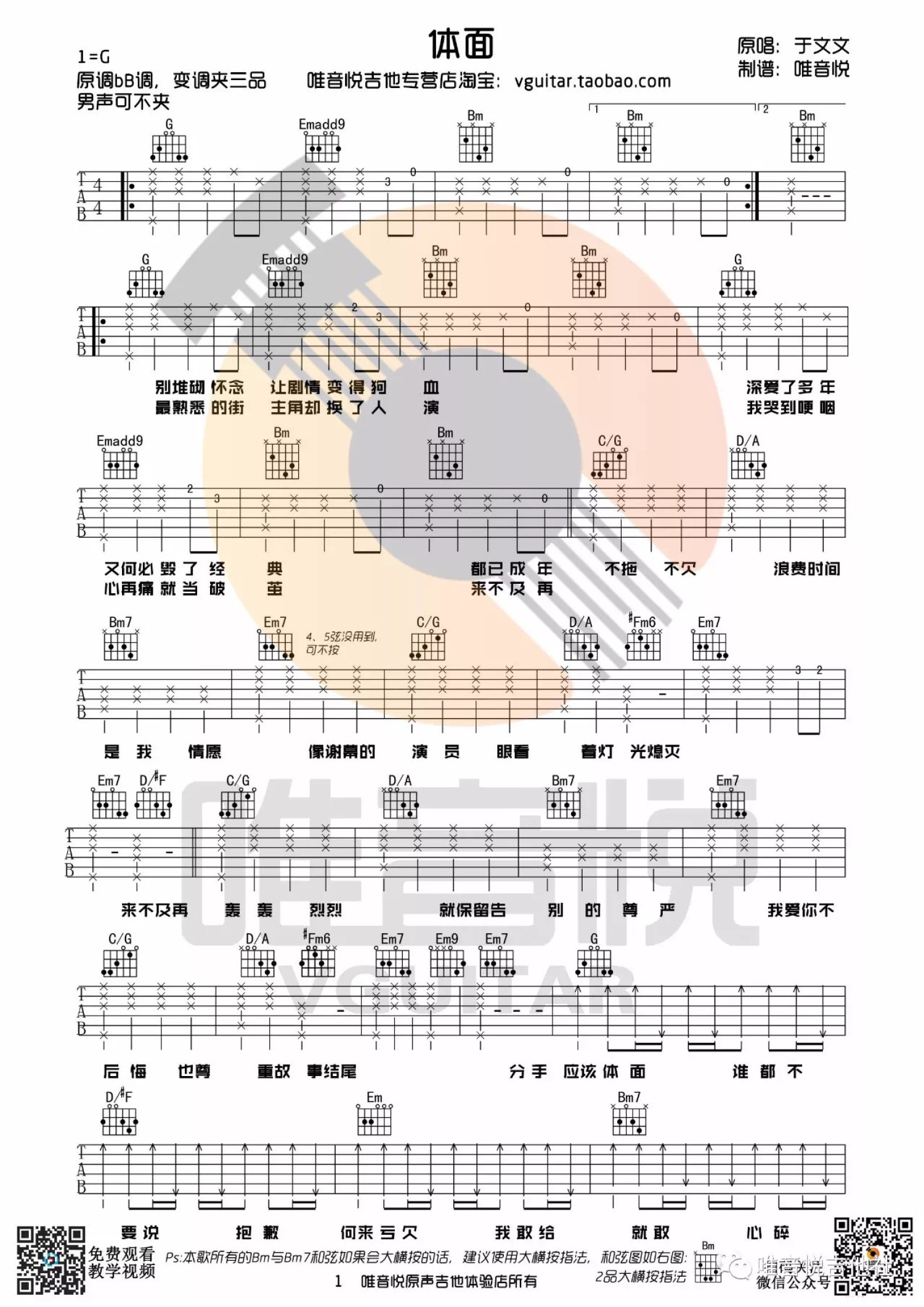 曲谱介绍: 徐佳豪《体面》吉他弹唱谱,共有2张高清图谱,免翻页排版设计。