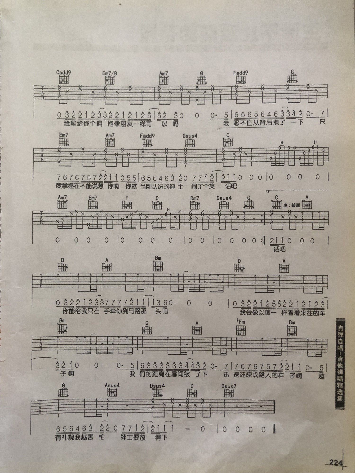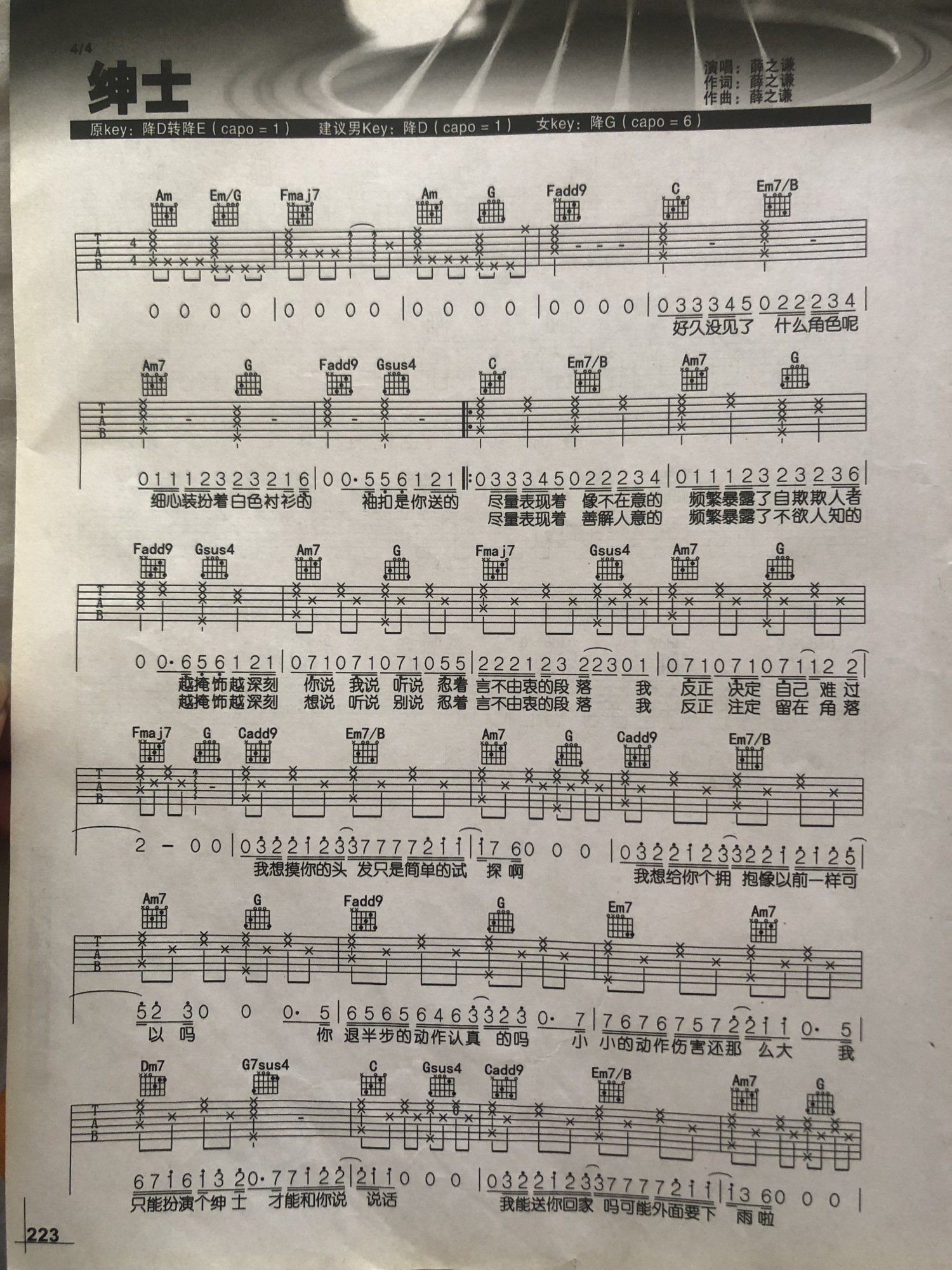 曲谱介绍: 薛之谦《绅士》吉他弹唱谱,共有2张高清图谱,免翻页排版设计。