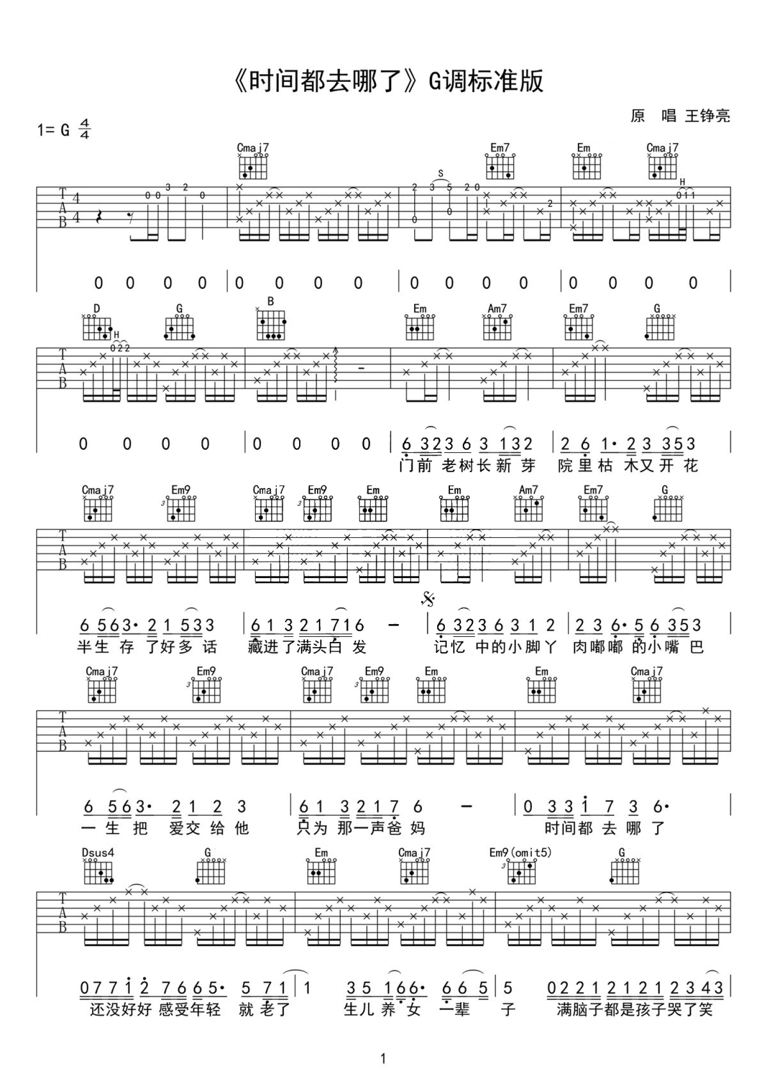 曲谱介绍: 《时间都去哪了G调标准高清版》吉他谱