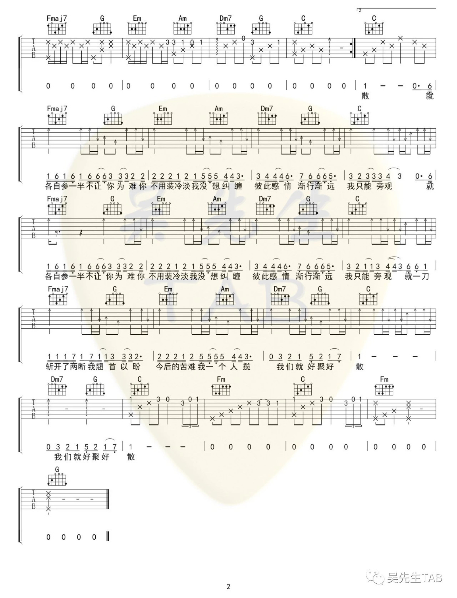 吉他弹唱C调来源:吴先生TAB446 浏览2022-04-13 21:25发布图谱共2页