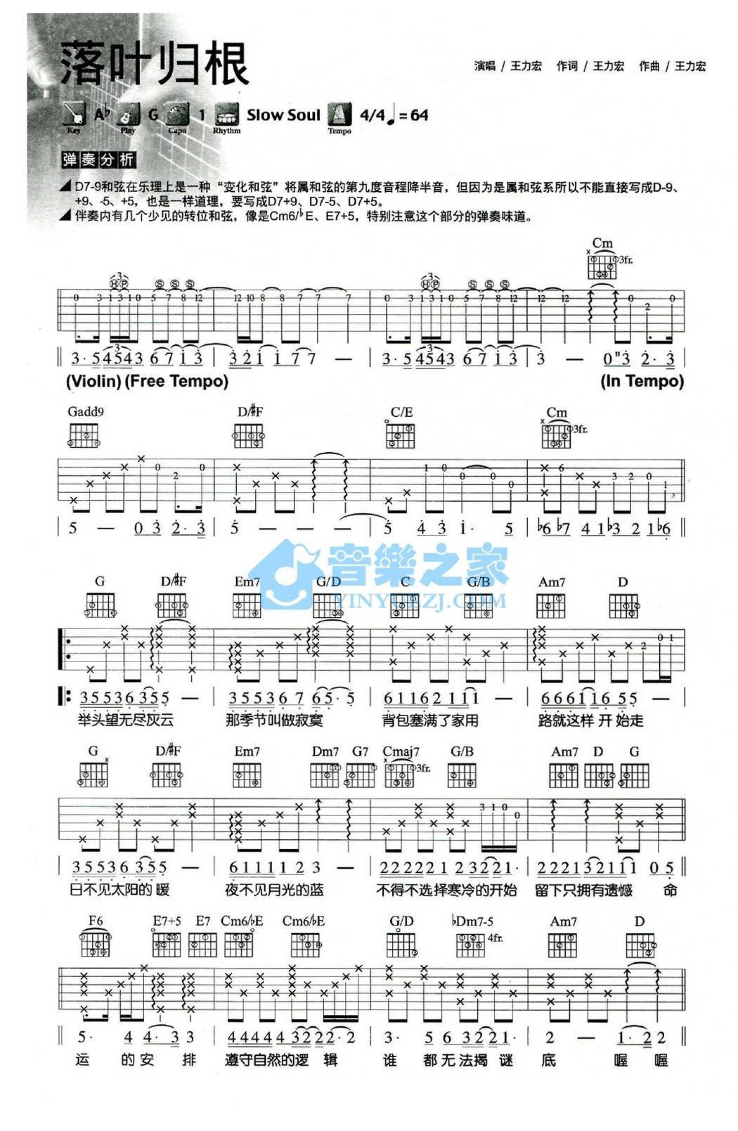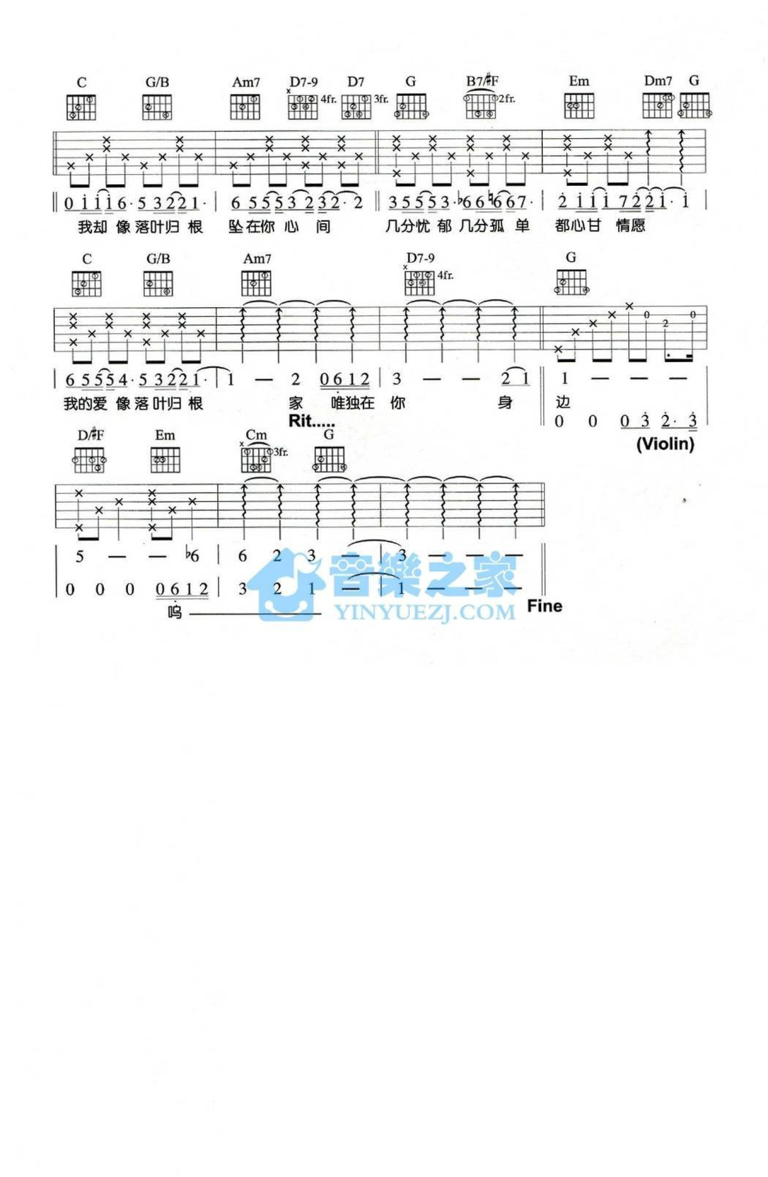 当前位置:琴谱网>吉他弹唱>落叶归根