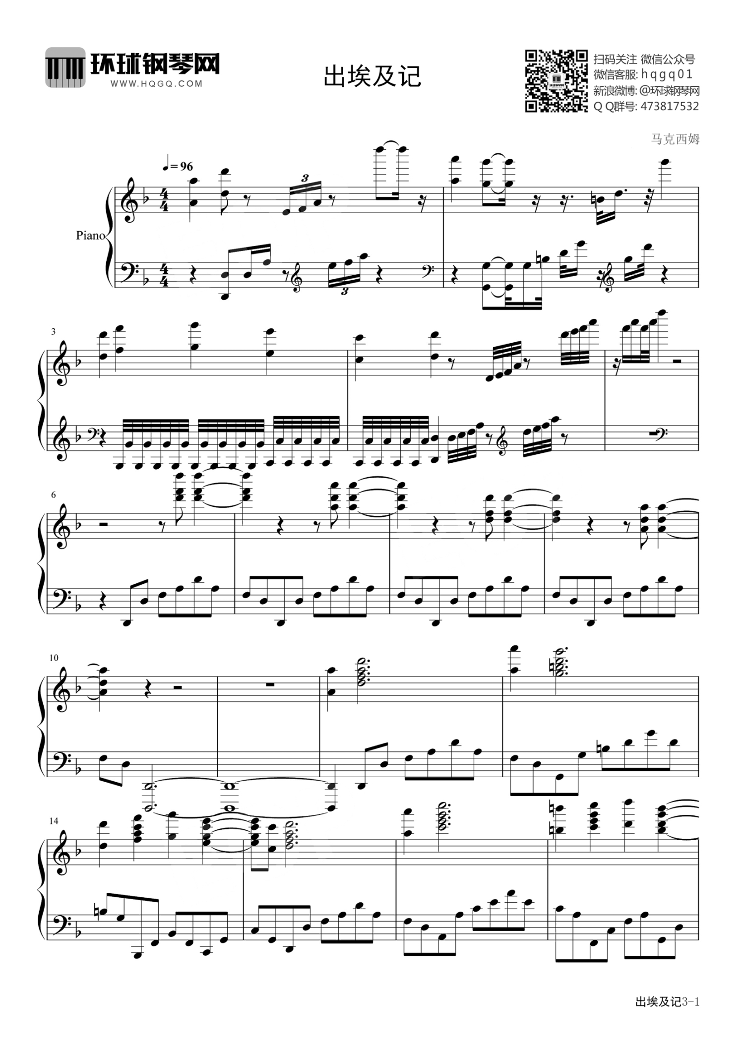 曲谱介绍: 钢琴谱出埃及记-马克西姆