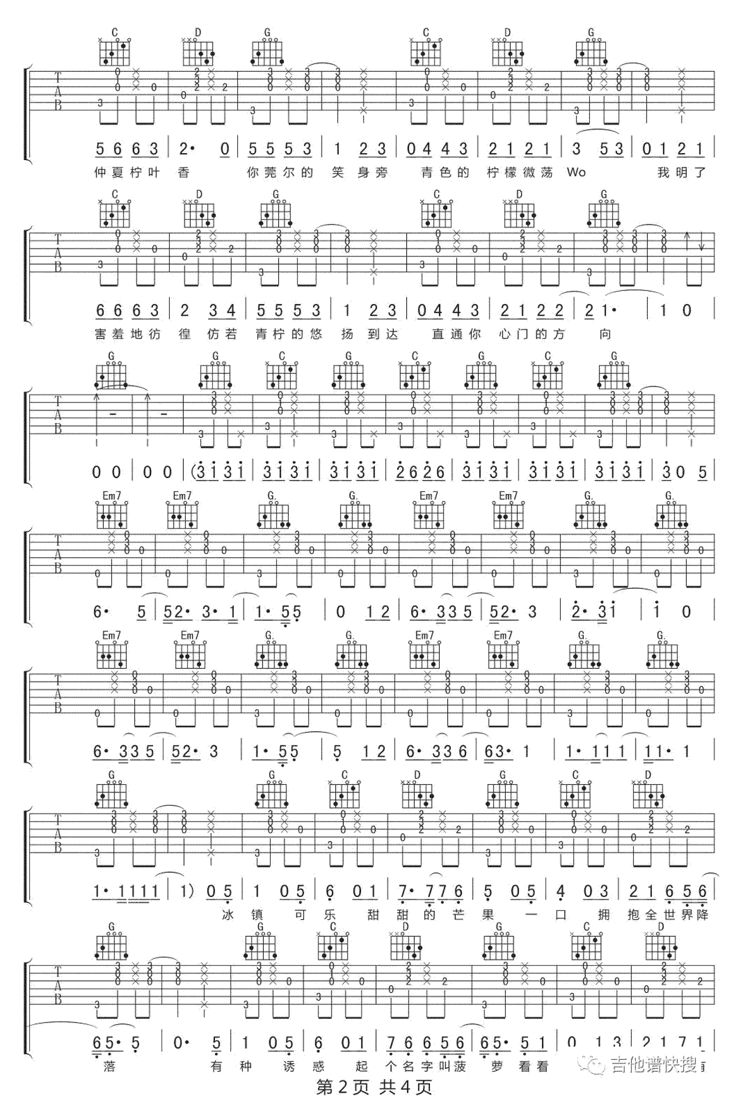 青柠吉他谱 - 徐秉龙/桃十五 - G调吉他弹唱谱