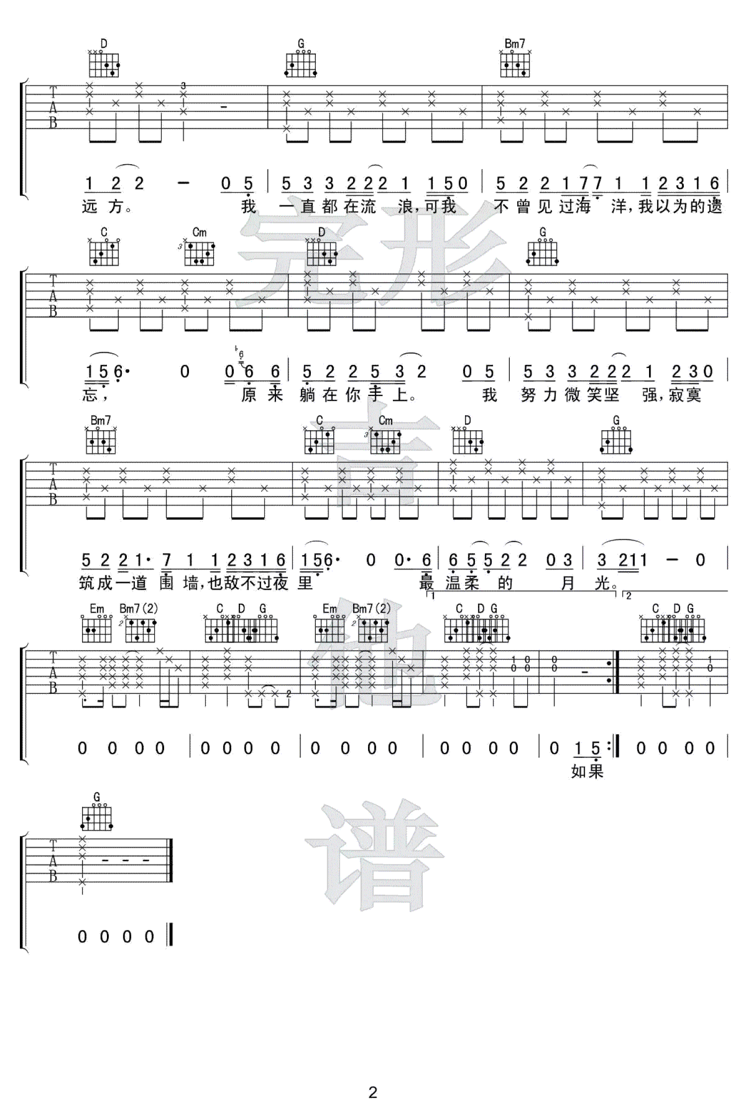吉他弹唱G调来源:完形吉他--沈亮1198 浏览2018-03-19 13:34发布图谱共2页