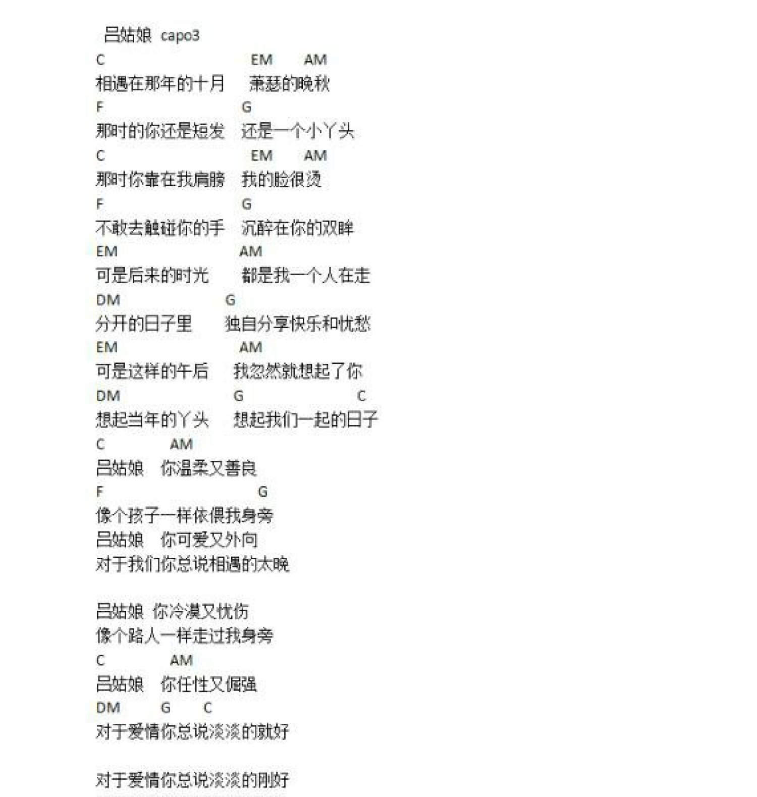 曲谱介绍: 《吕姑娘》吉他和弦谱