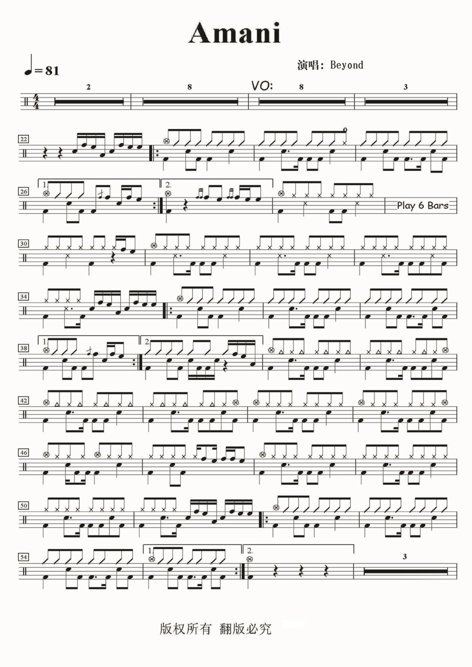 • AMANI鼓谱 - Beyond - 架子鼓谱第1张