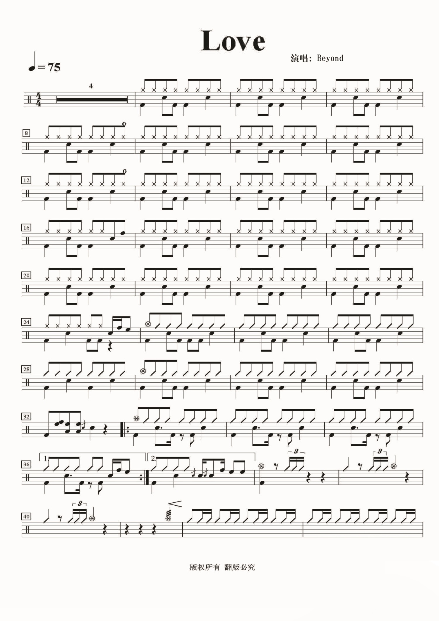 • LOVE鼓谱 - Beyond - 架子鼓谱第1张