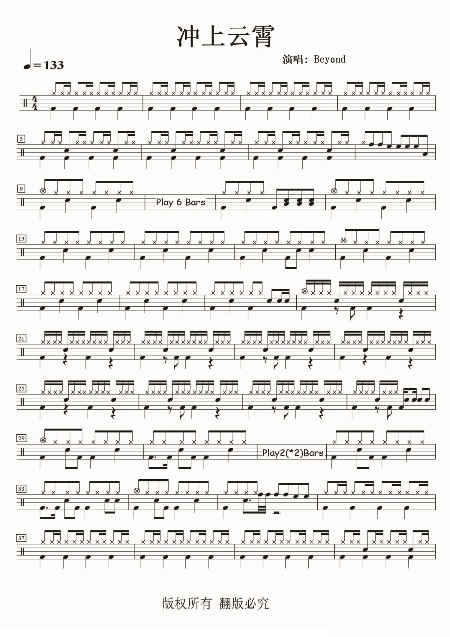 • 冲上云霄鼓谱 - Beyond - 架子鼓谱第1张