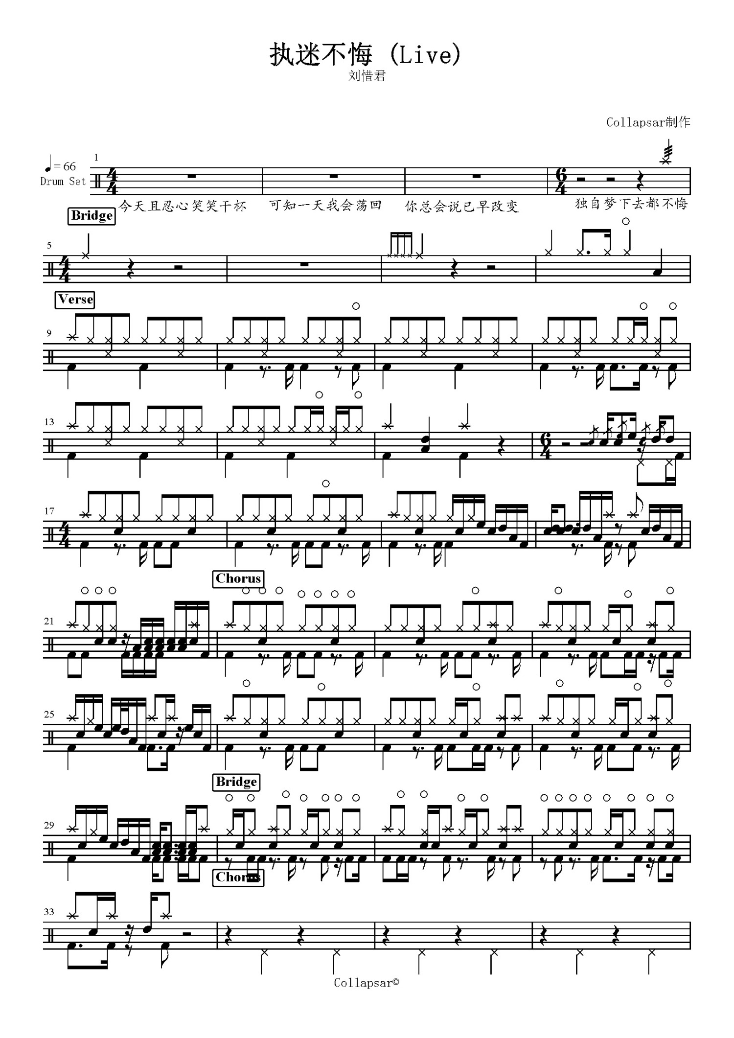 执迷不悔鼓谱 - 刘惜君 - 架子鼓谱