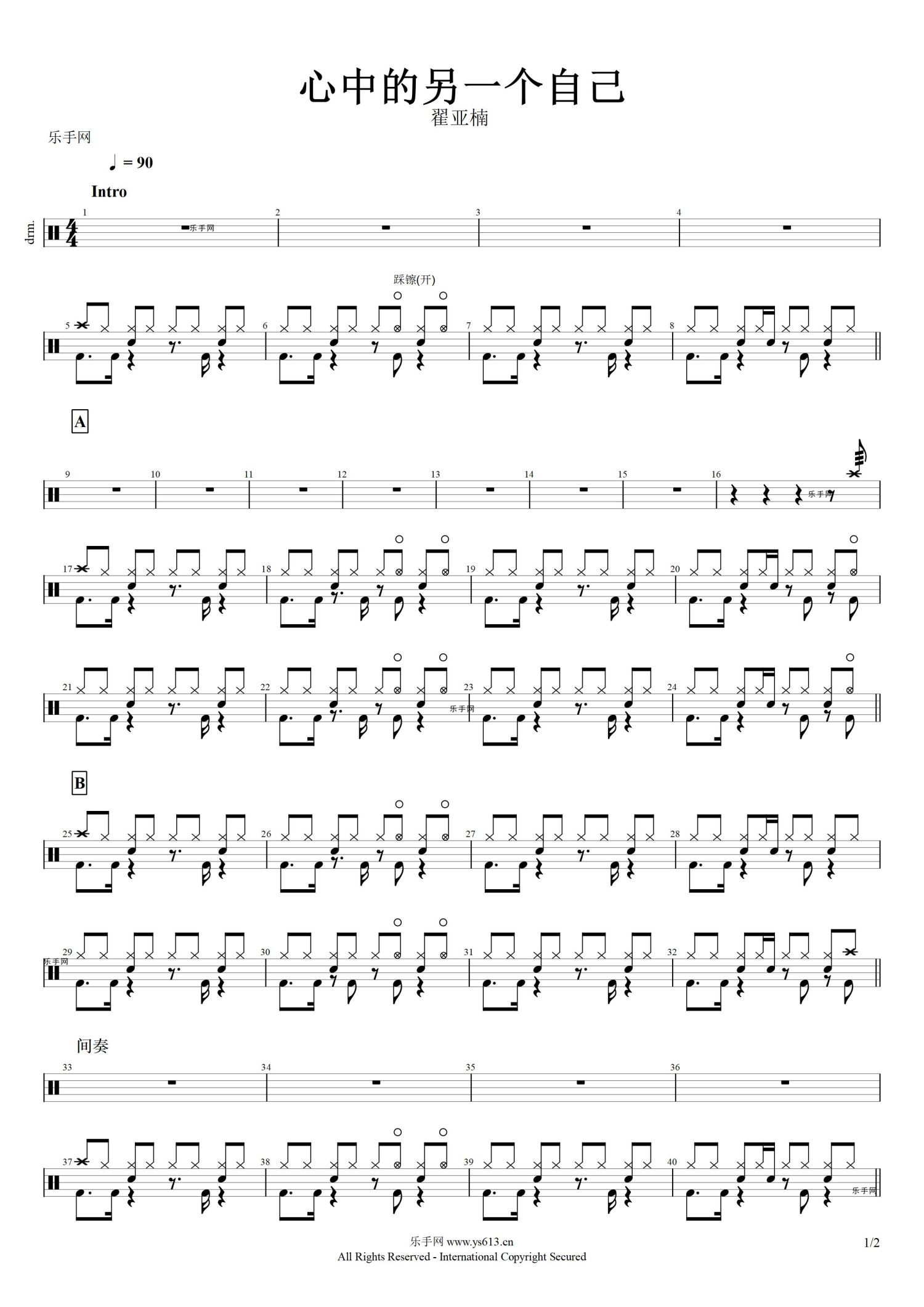 心中的另一个自己鼓谱 - 翟亚楠 - 架子鼓谱