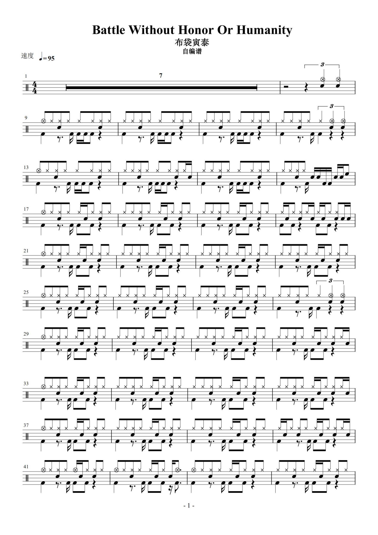 当前位置:琴谱网>架子鼓谱>Battle Without Honor or Humanity