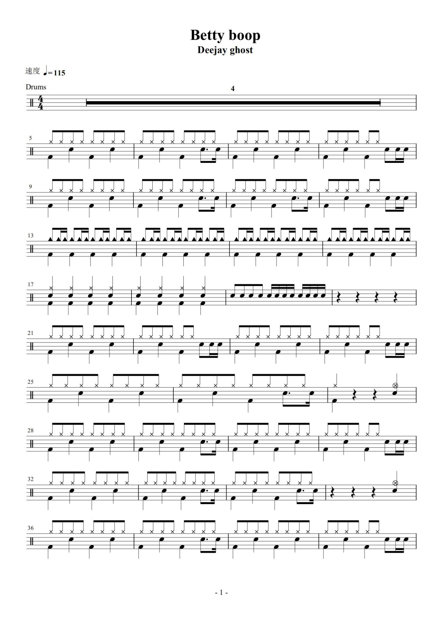 Betty Boop鼓谱 - Deejayghost - 架子鼓谱