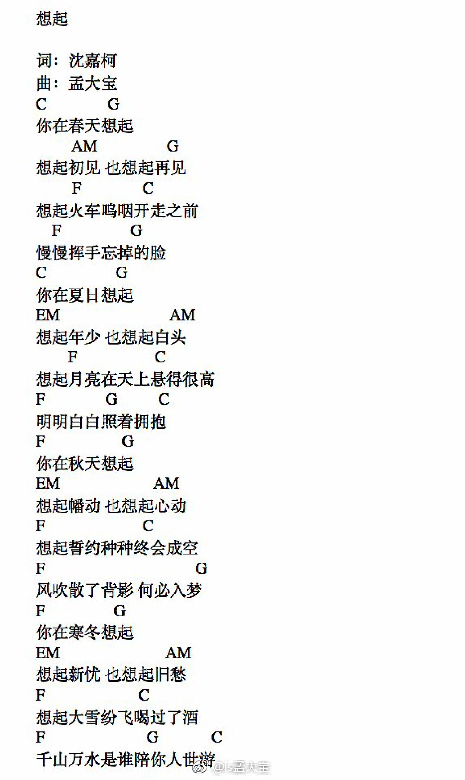 曲谱介绍: 《想起》吉他和弦谱