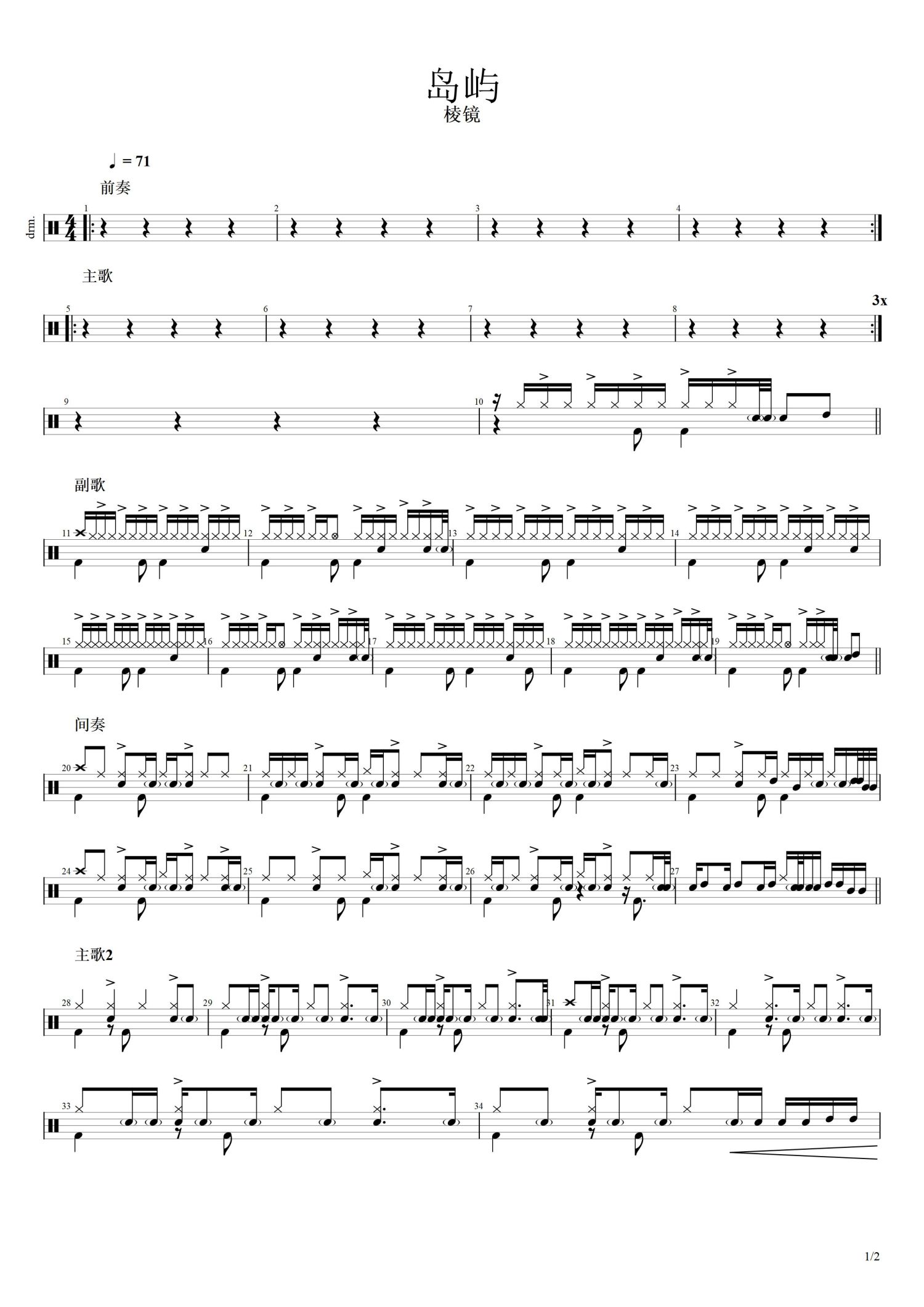 • 岛屿鼓谱 - 棱镜乐队 - 架子鼓谱第1张