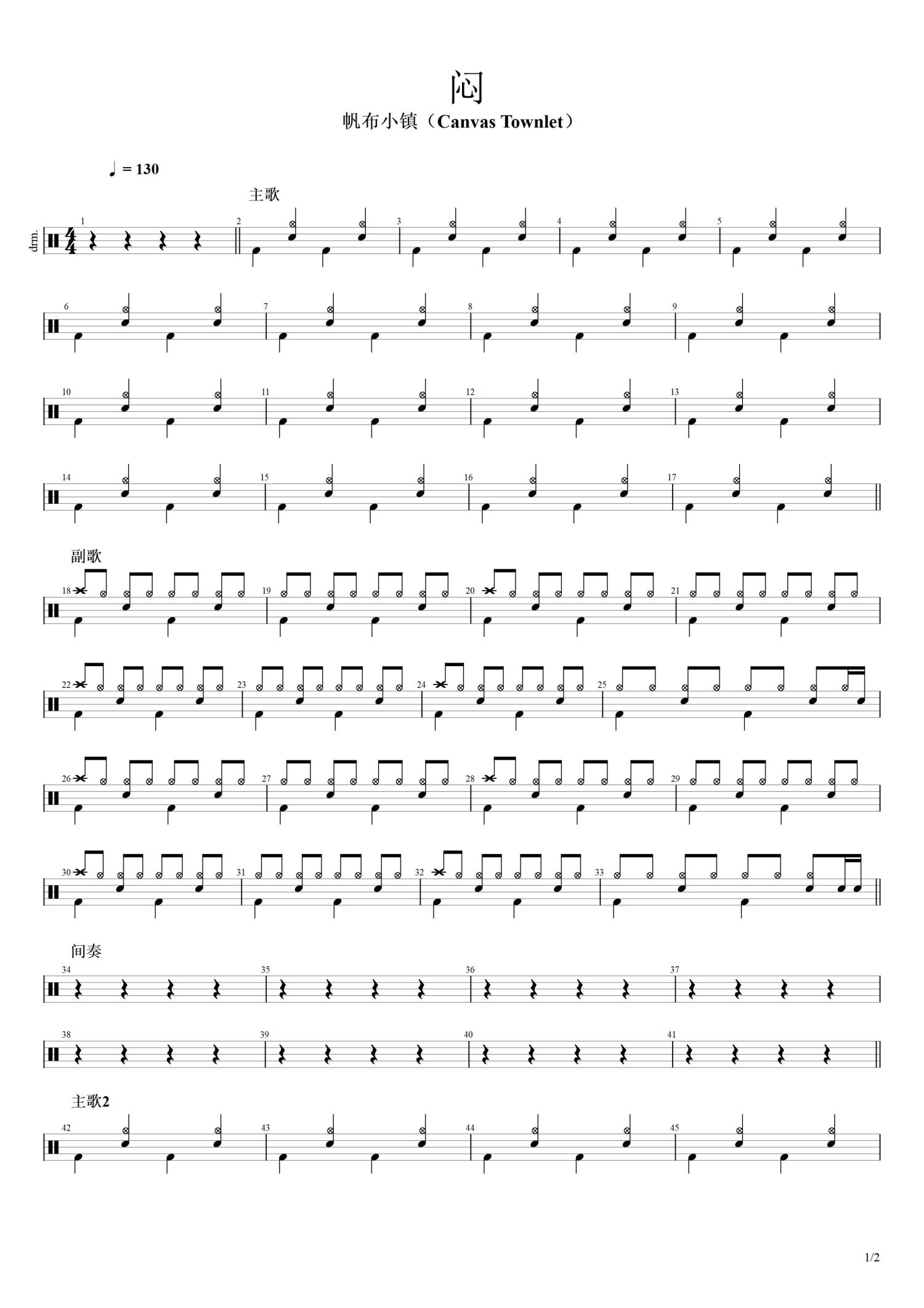 • 闷鼓谱 - 帆布小镇(Canvas Townlet) - 架子鼓谱第1张