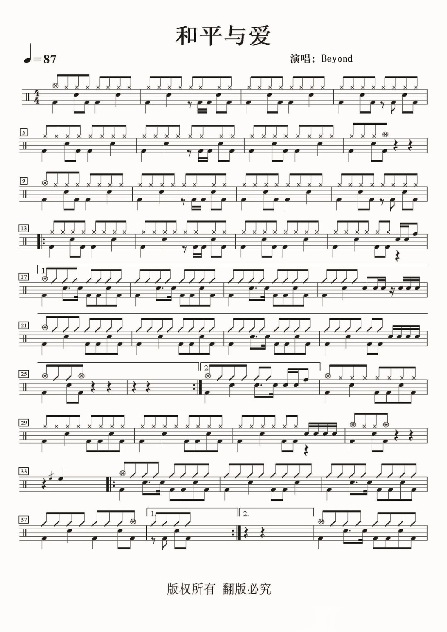 • 和平与爱鼓谱 - Beyond - 架子鼓谱第1张