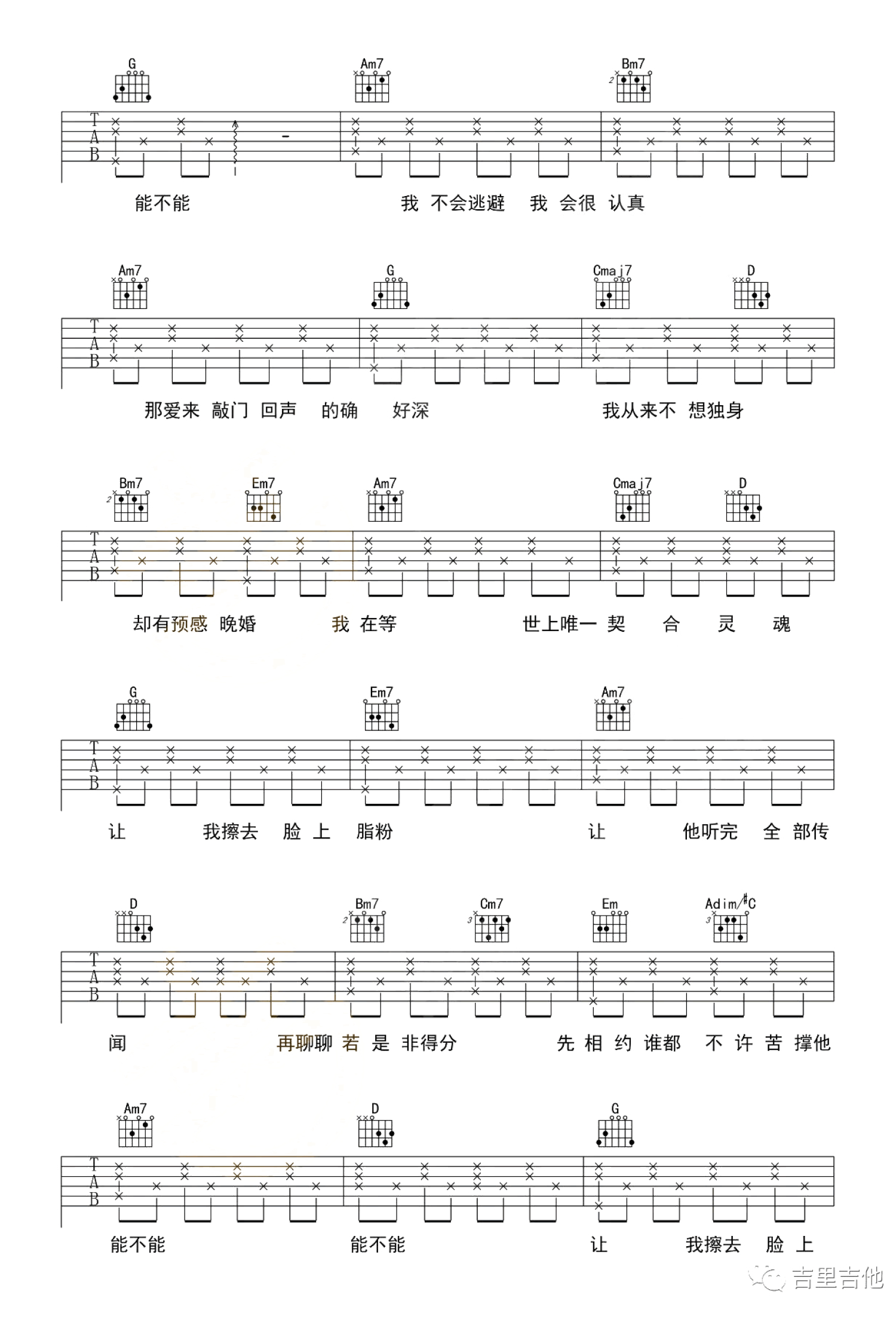 当前位置:琴谱网>吉他弹唱>晚婚
