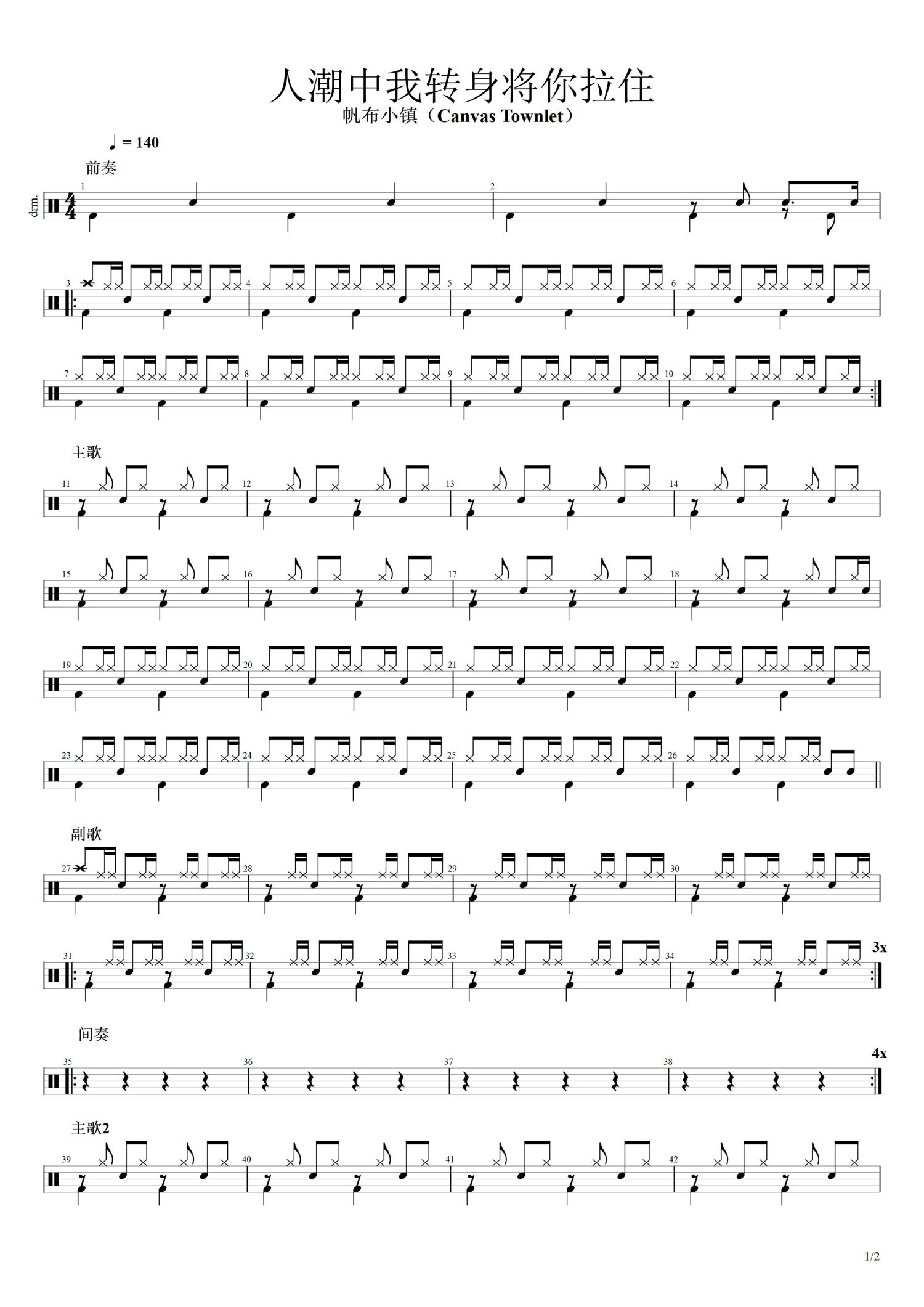 • 人潮中我转身将你拉住鼓谱 - 帆布小镇(Canvas Townlet) - 架子鼓谱第1张
