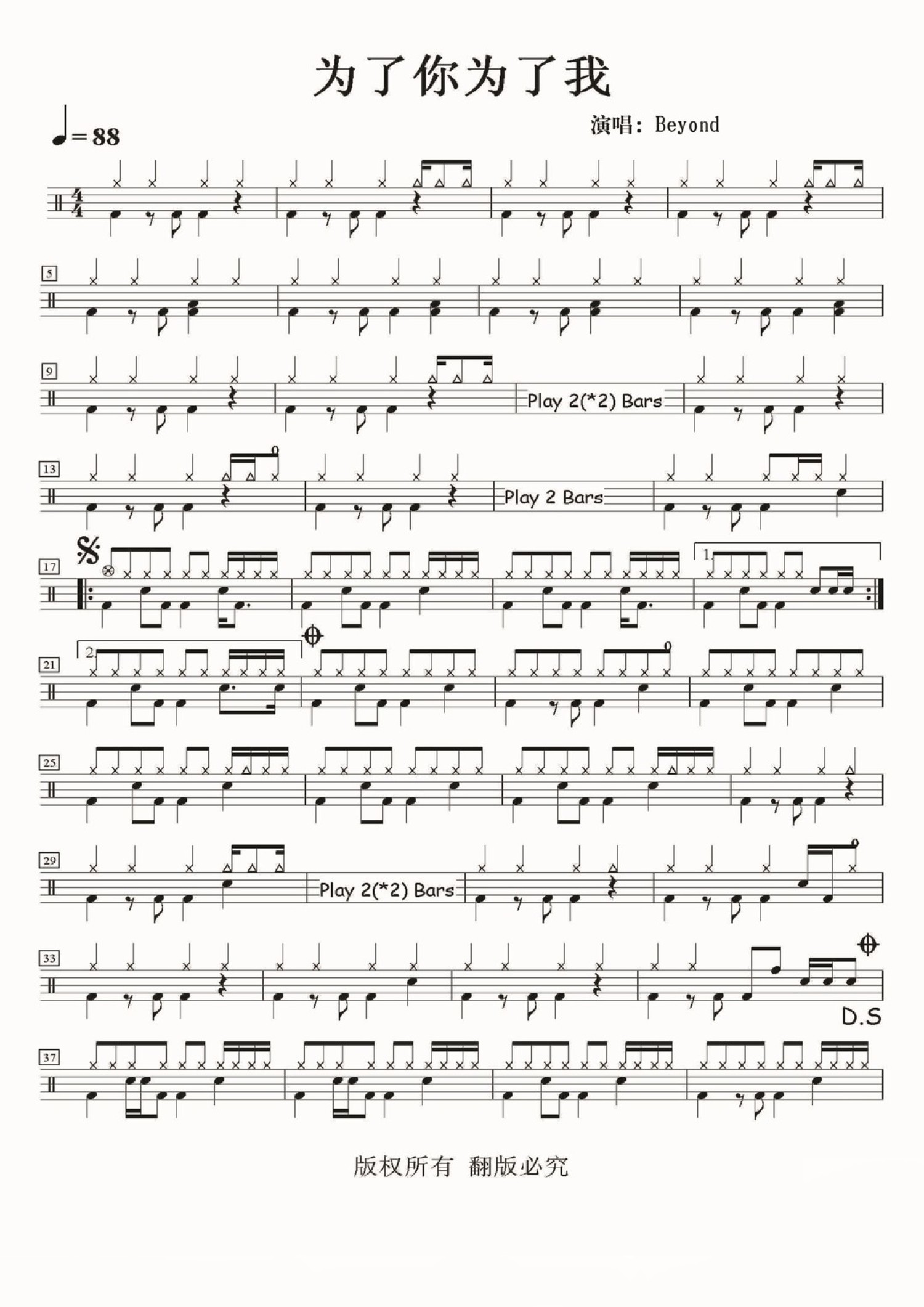为了你,为了我鼓谱 - Beyond - 架子鼓谱