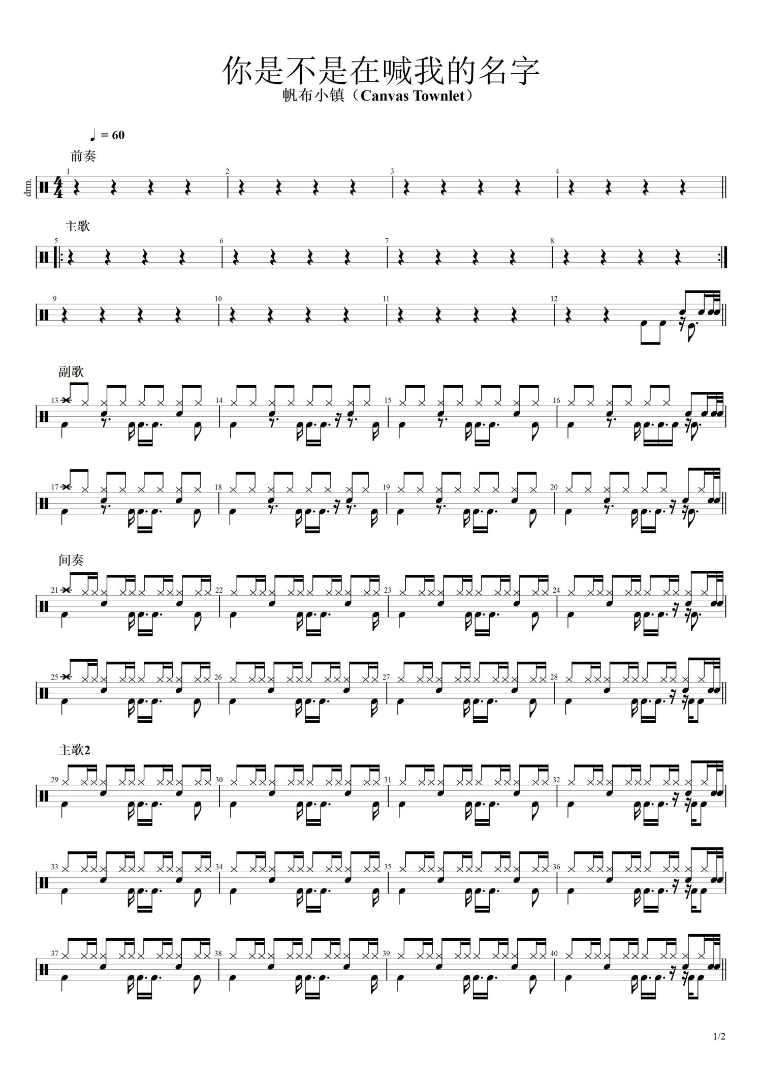 • 你是不是在喊我的名字鼓谱 - 帆布小镇(Canvas Townlet) - 架子鼓谱第1张