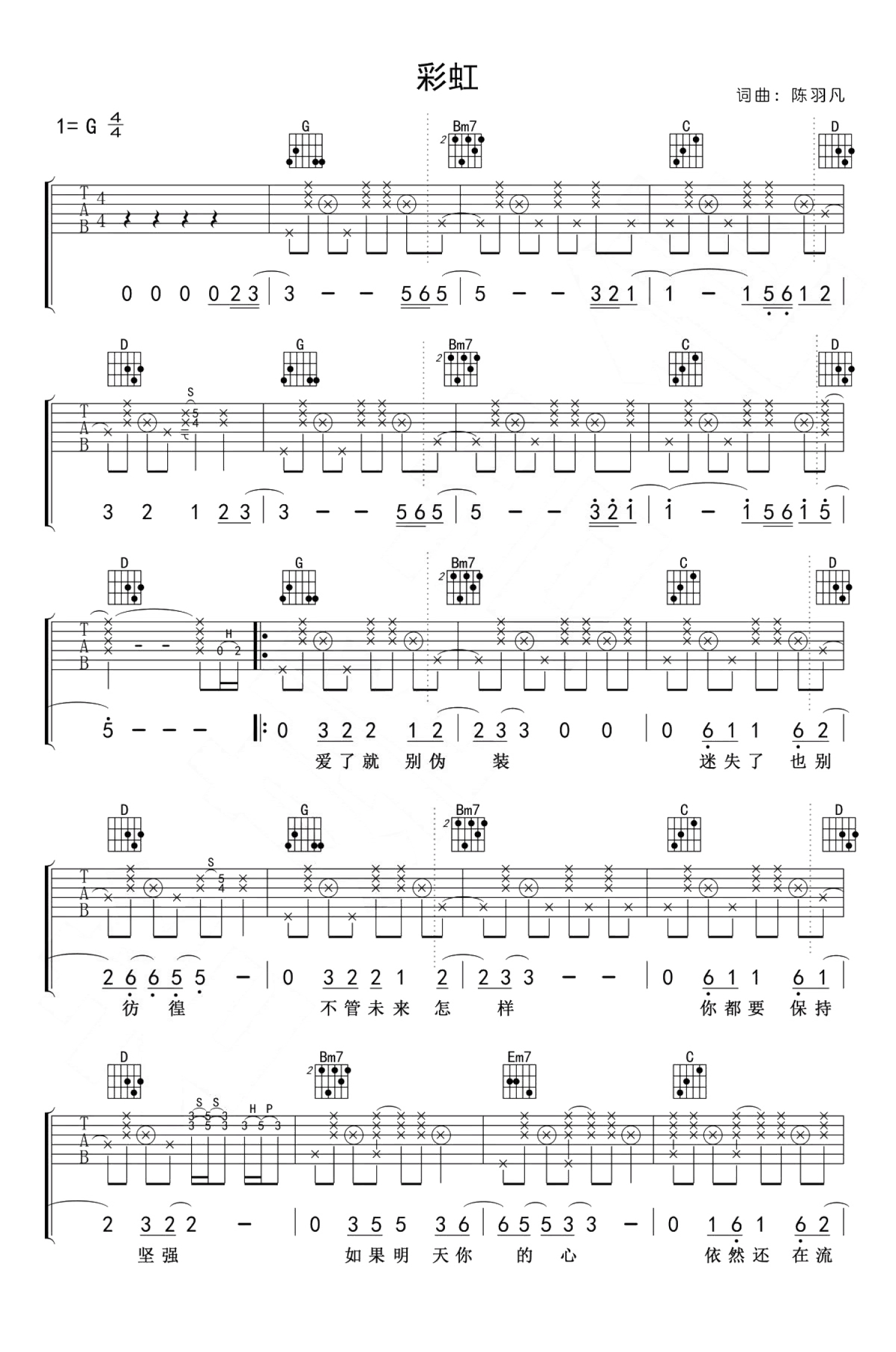 彩虹吉他谱 - 羽泉 - G调吉他弹唱谱