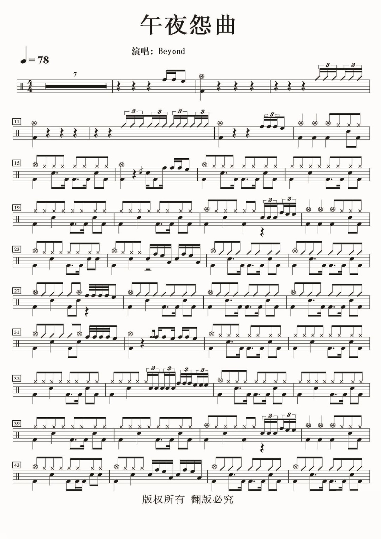 • 午夜怨曲鼓谱 - Beyond - 架子鼓谱第1张