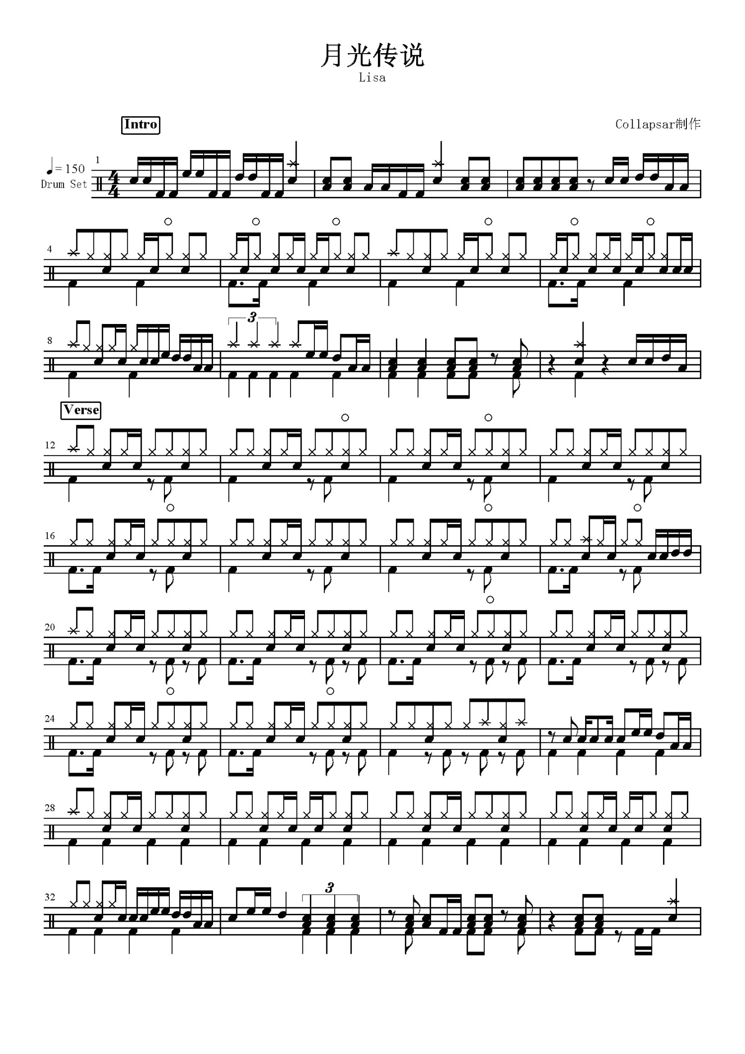 • 月光传说鼓谱 - lisa - 架子鼓谱第1张