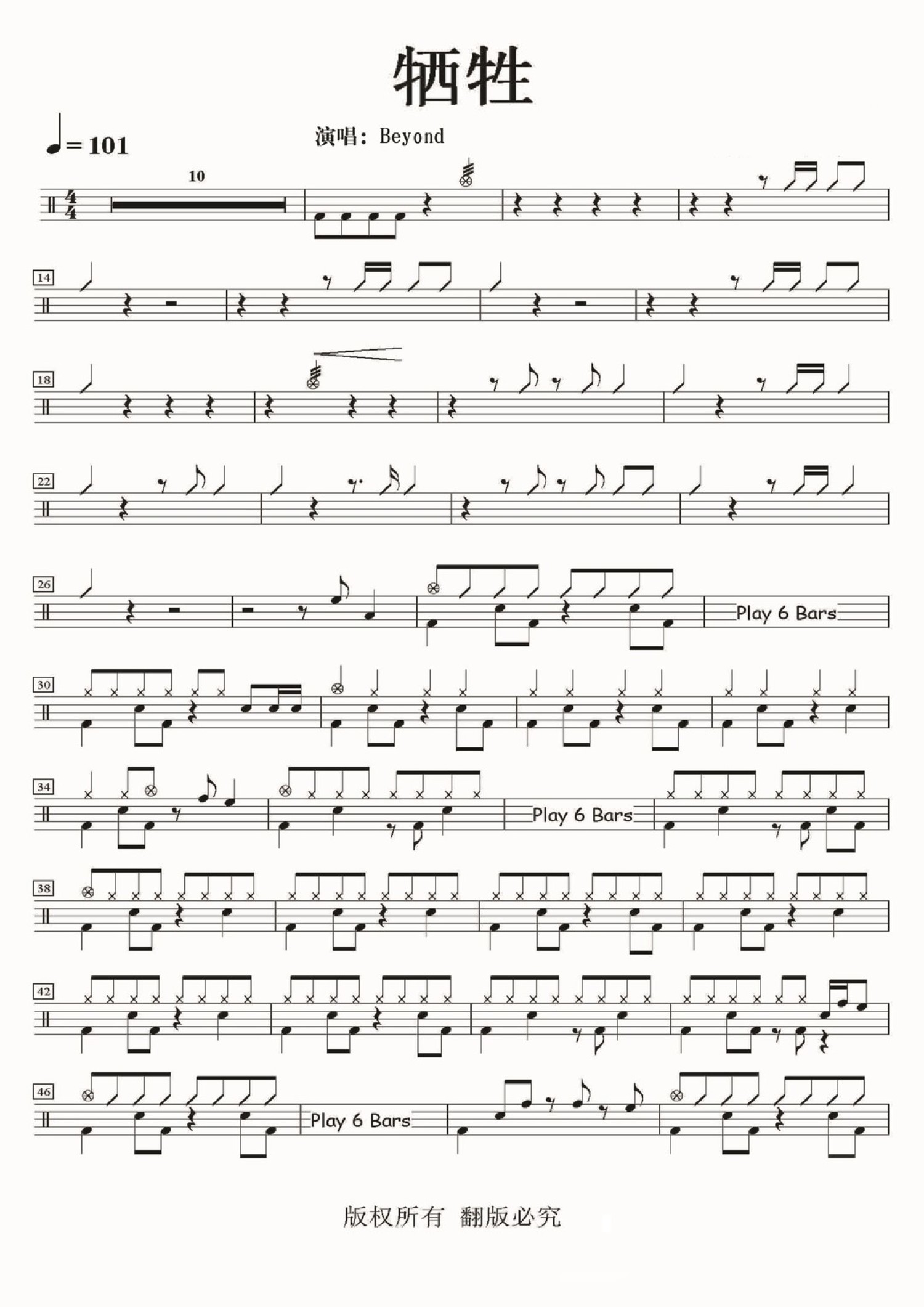 • 牺牲鼓谱 - Beyond - 架子鼓谱第1张