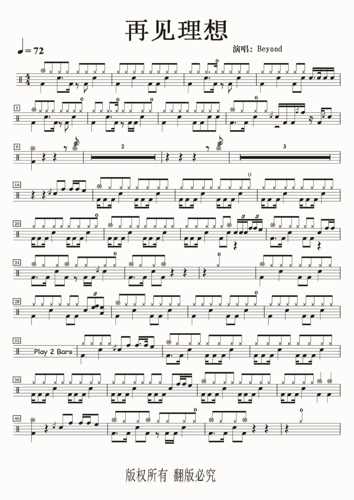 • 再见理想鼓谱 - Beyond - 架子鼓谱第1张