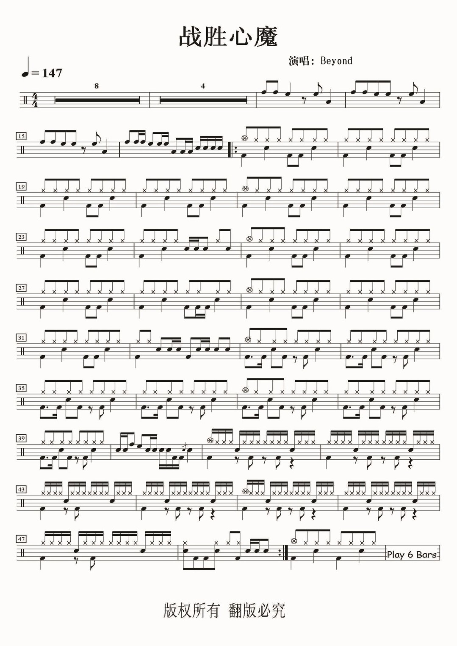 • 战胜心魔鼓谱 - Beyond - 架子鼓谱第1张
