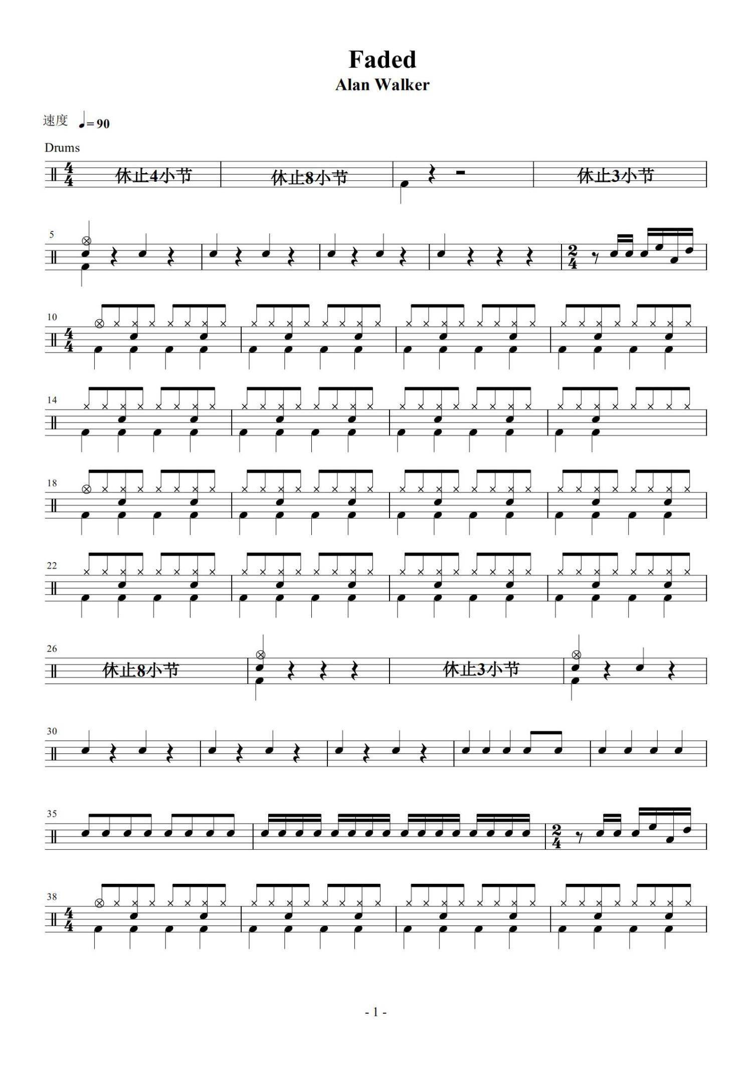 • Faded鼓谱 - 艾斯琳·索尔海姆 - 架子鼓谱第1张