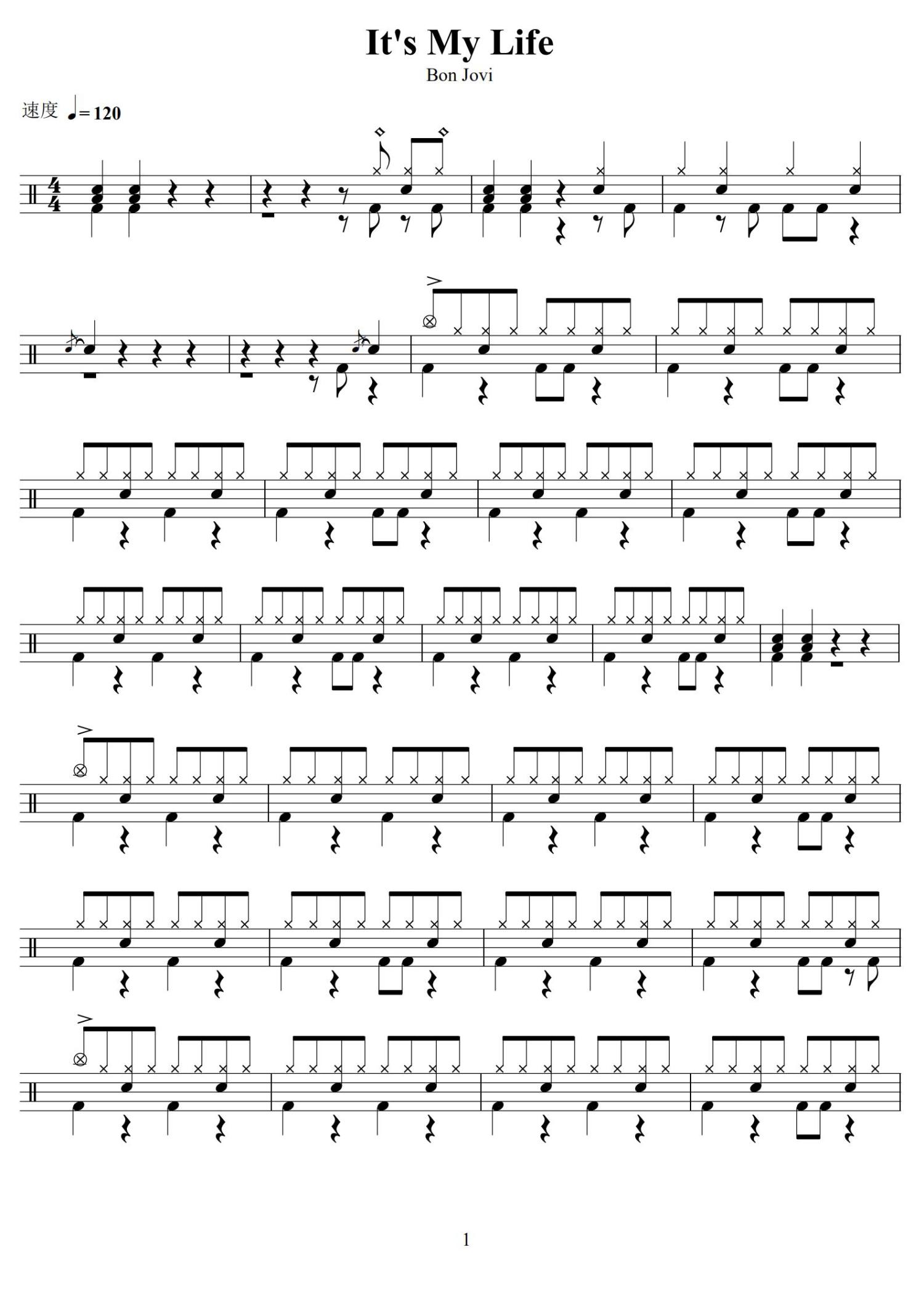 t's My Life鼓谱 - Bon Jovi乐队 - 架子鼓谱