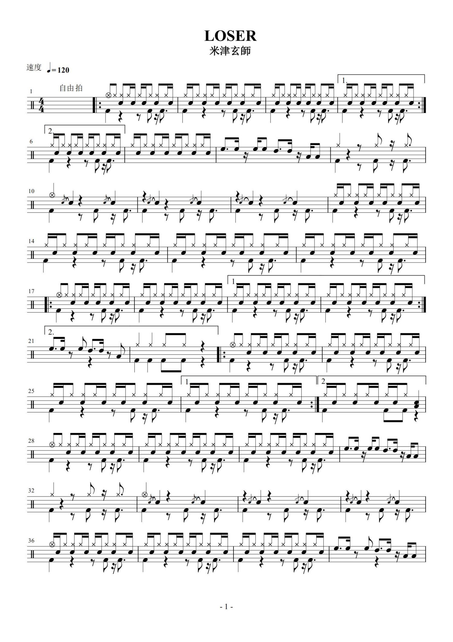 • Loser鼓谱 - 米津玄师 - 架子鼓谱第1张