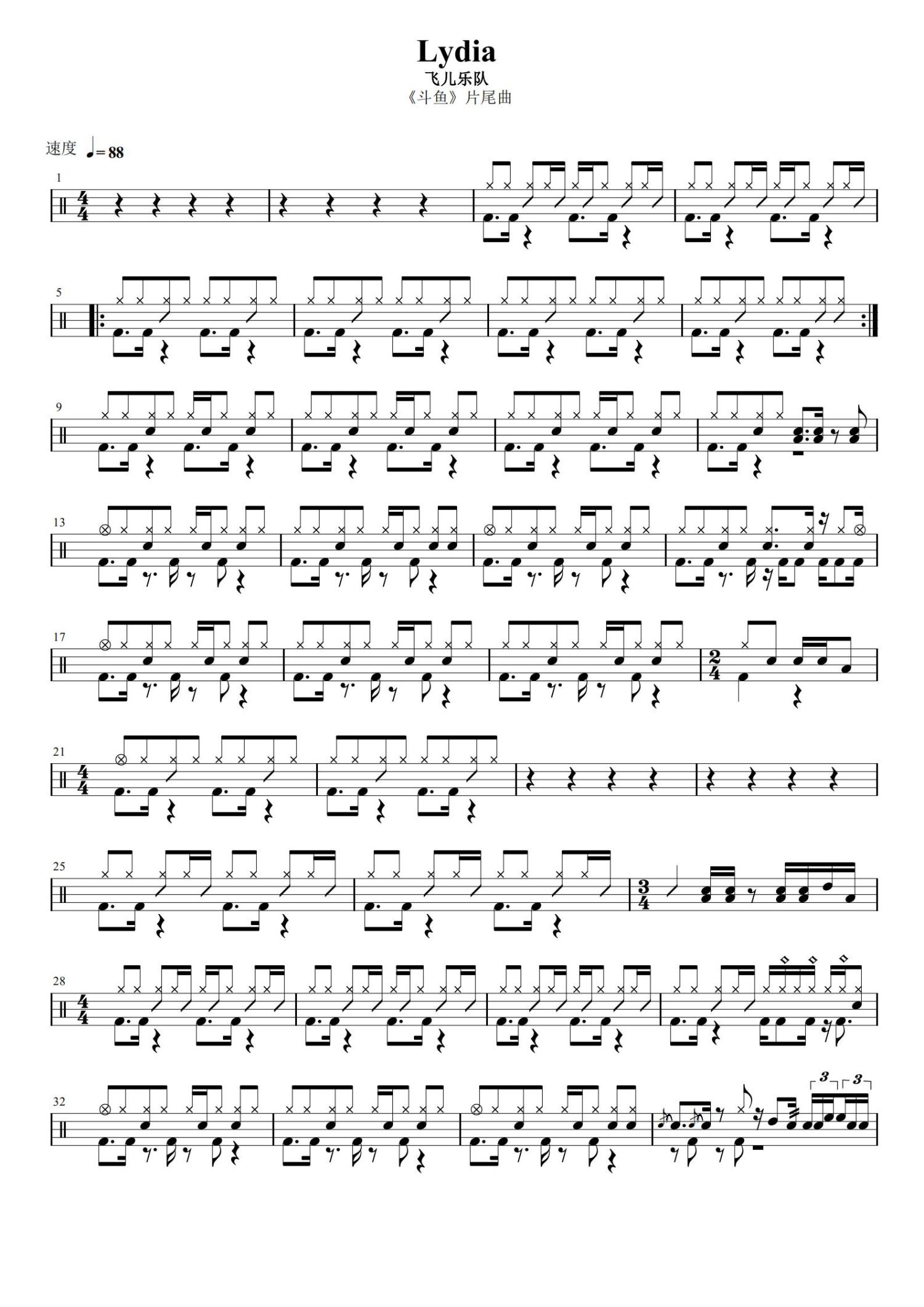 • Lydia鼓谱 - 飞儿乐团 - 架子鼓谱第1张